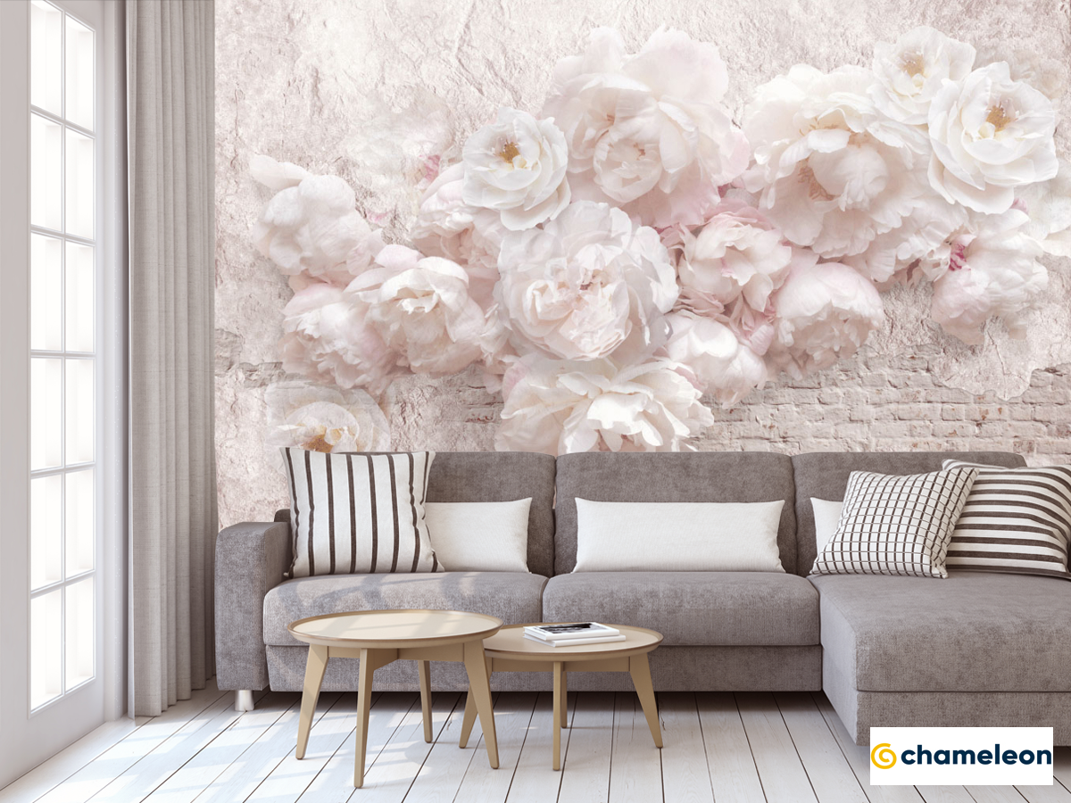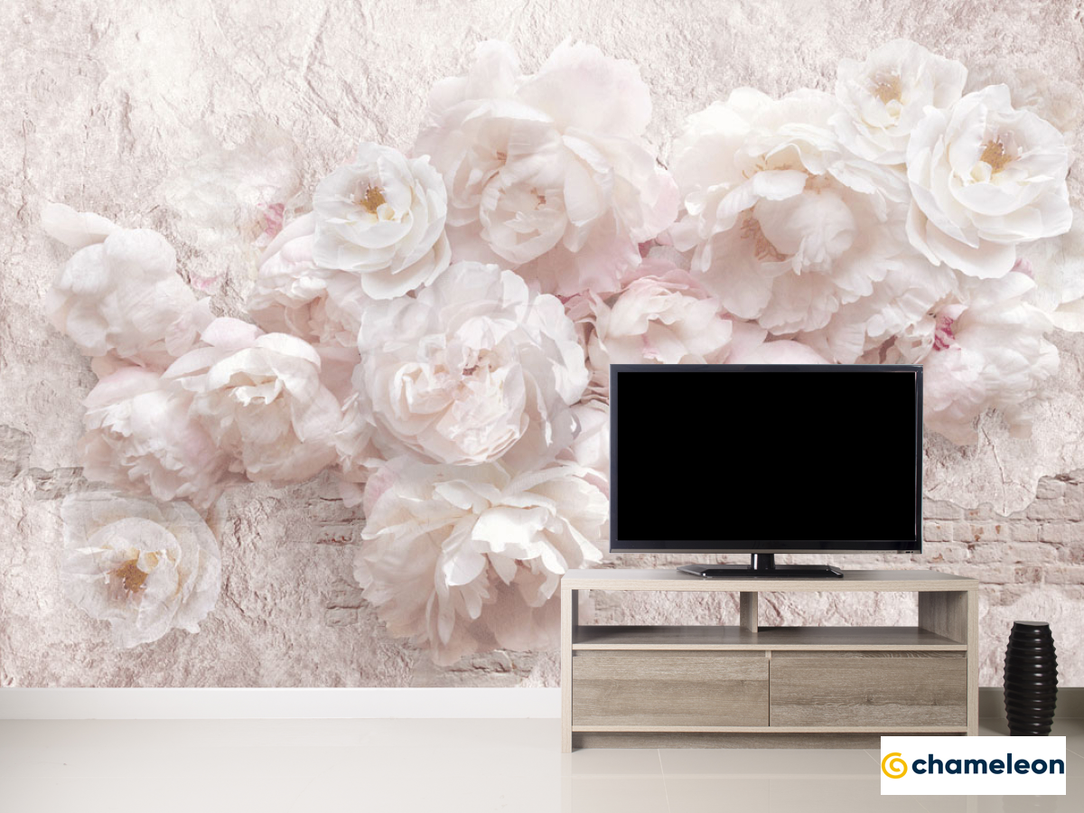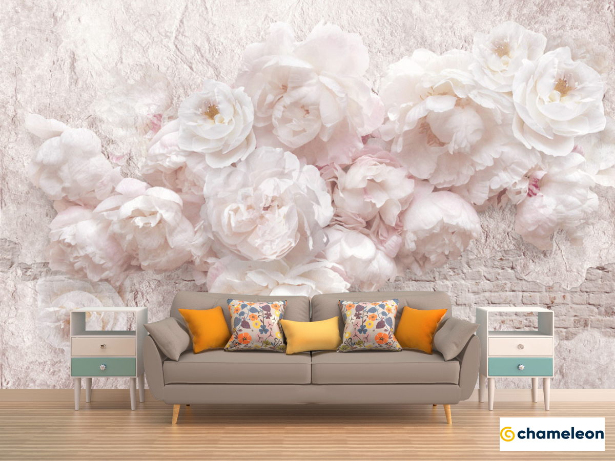 Фотообои «Фотообои Белые пионы шероховатая стена», (арт. 23941) - купить в интернет-магазине Хамелеон