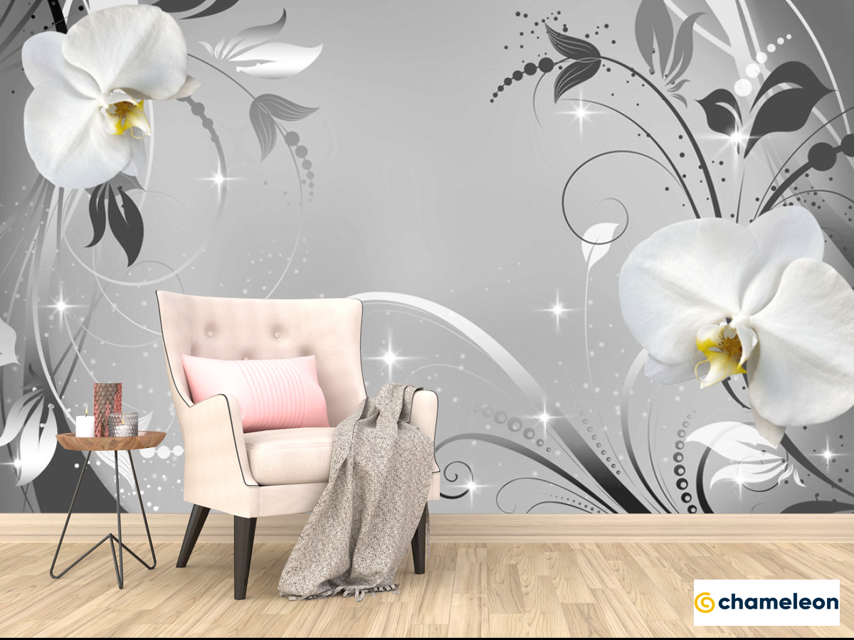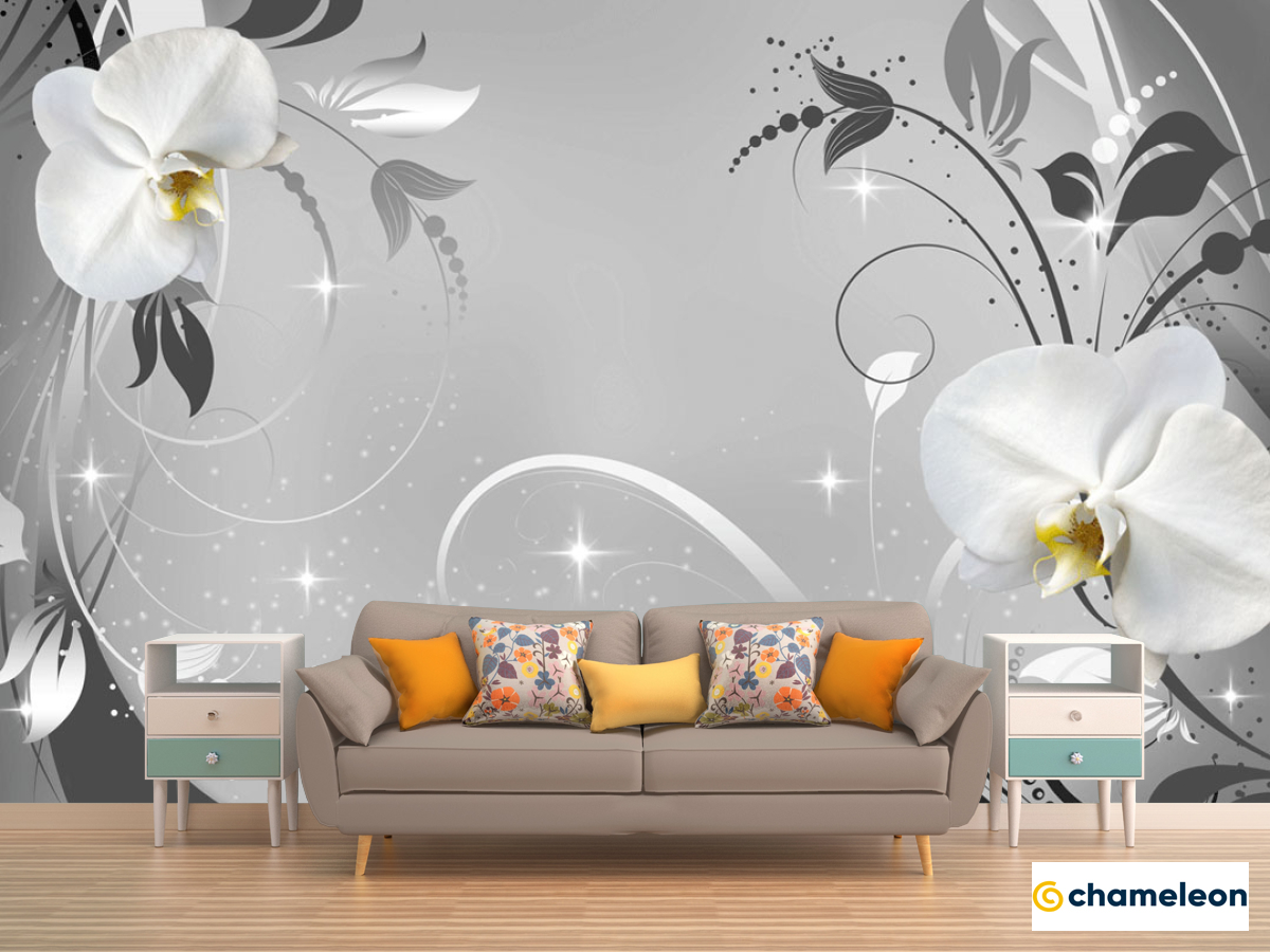 Фотообои «Фотообои Белые орхидеи на сером фоне», (арт. 23945) - купить в интернет-магазине Хамелеон