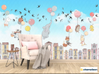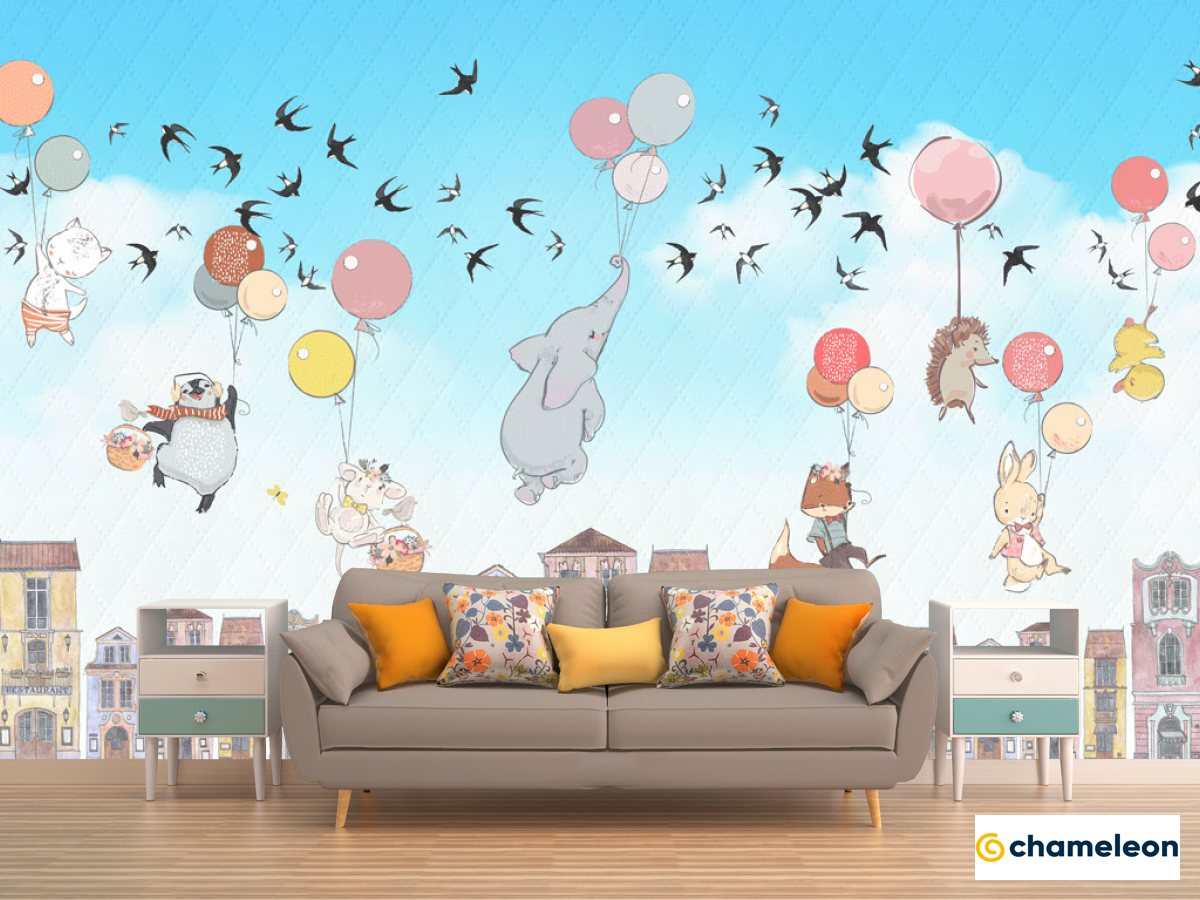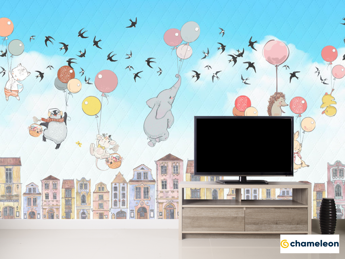Фотообои «Фотообои Звери летящие над домиками», (арт. 23980) - купить в интернет-магазине Хамелеон