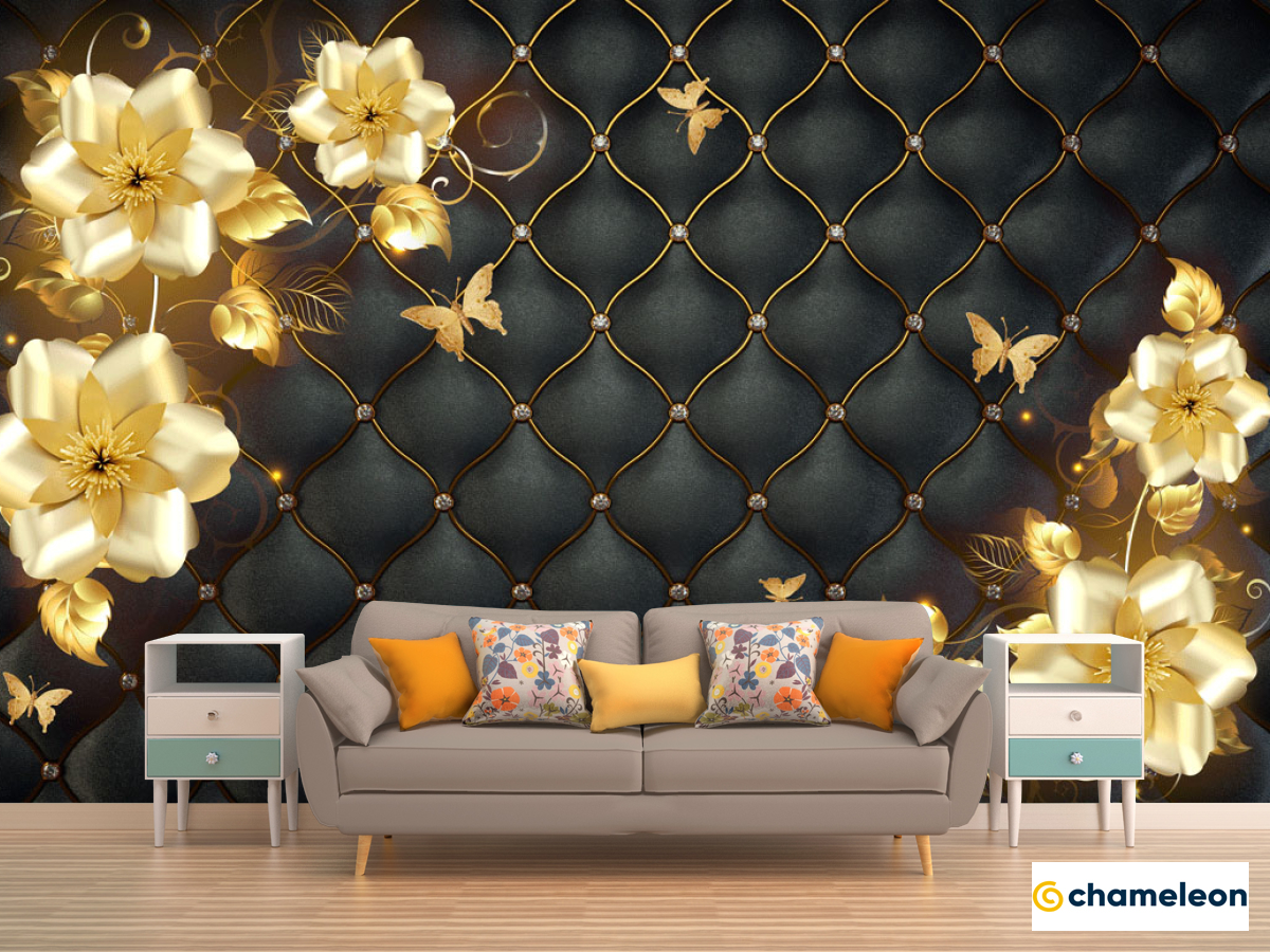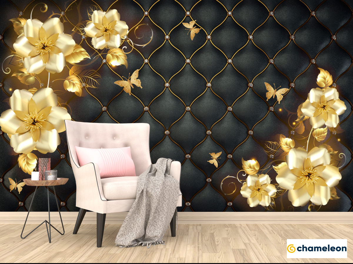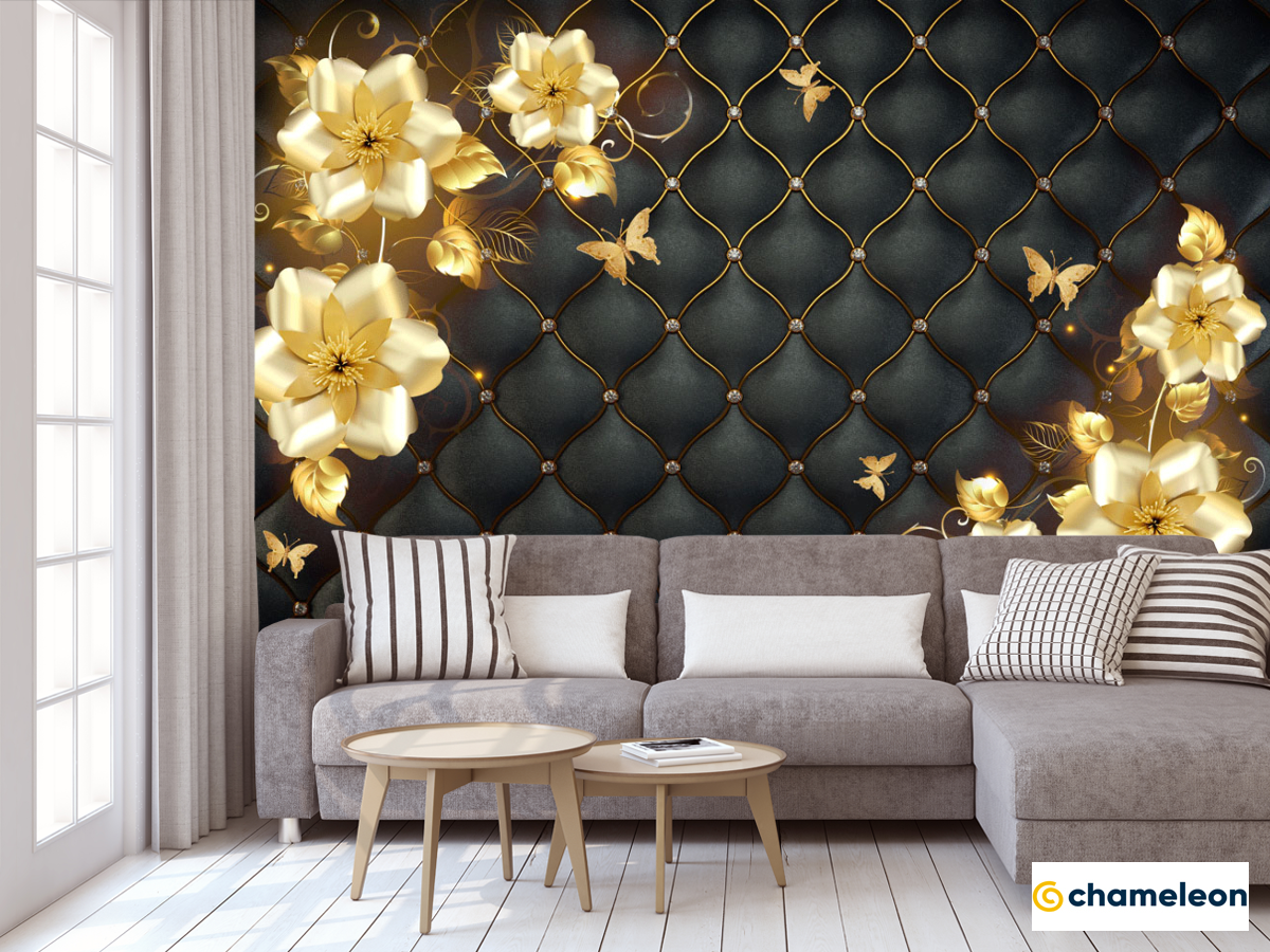 Фотообои «Фотообои 3д золотые цветы топлер», (арт. 23984) - купить в интернет-магазине Хамелеон