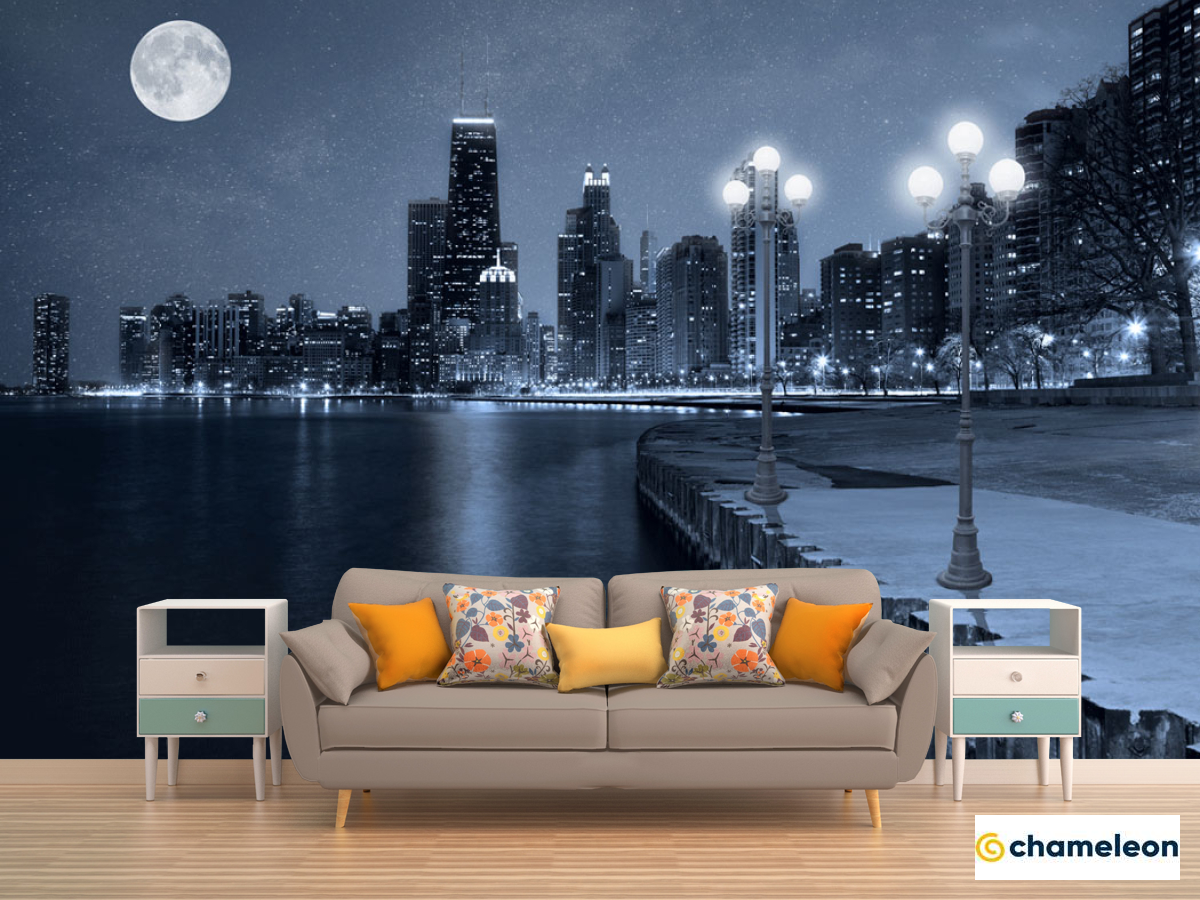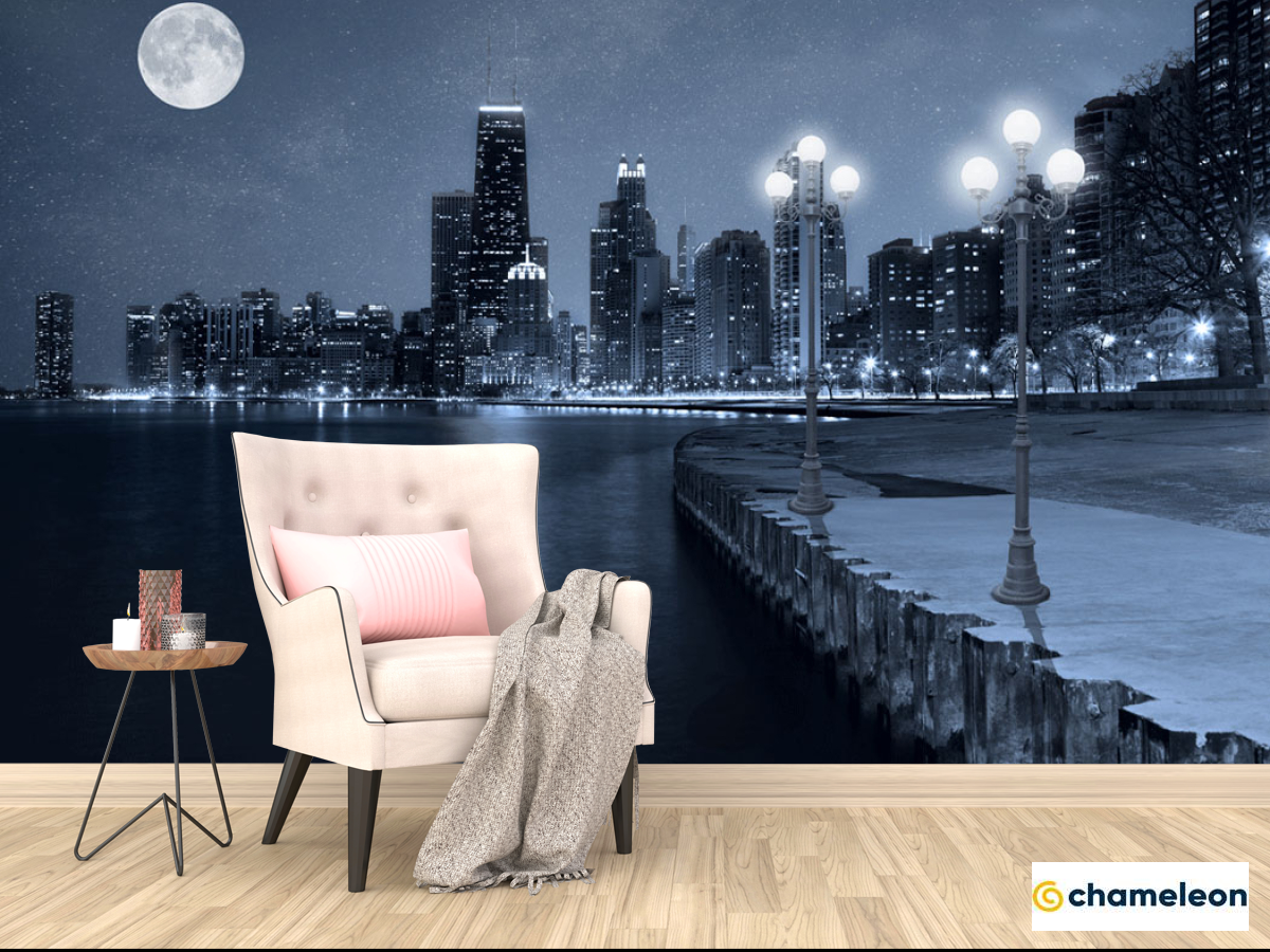 Фотообои «Фотообои Ночной город в синих оттенках», (арт. 24007) - купить в интернет-магазине Хамелеон