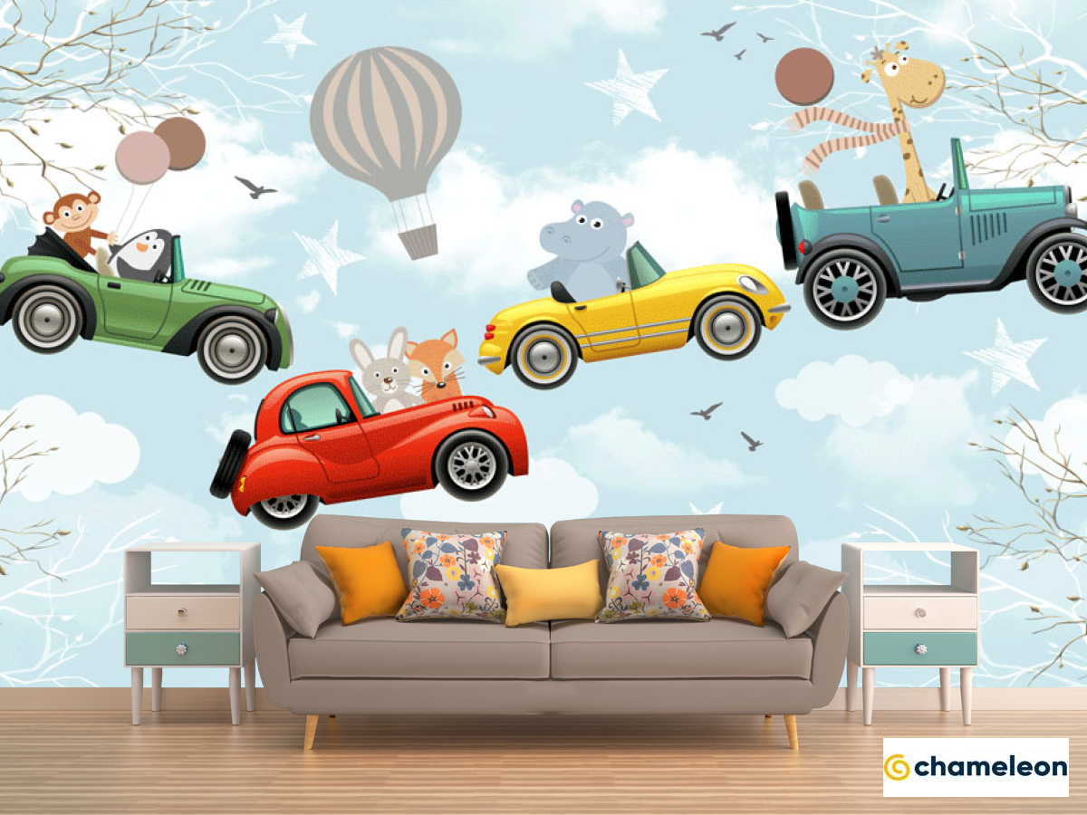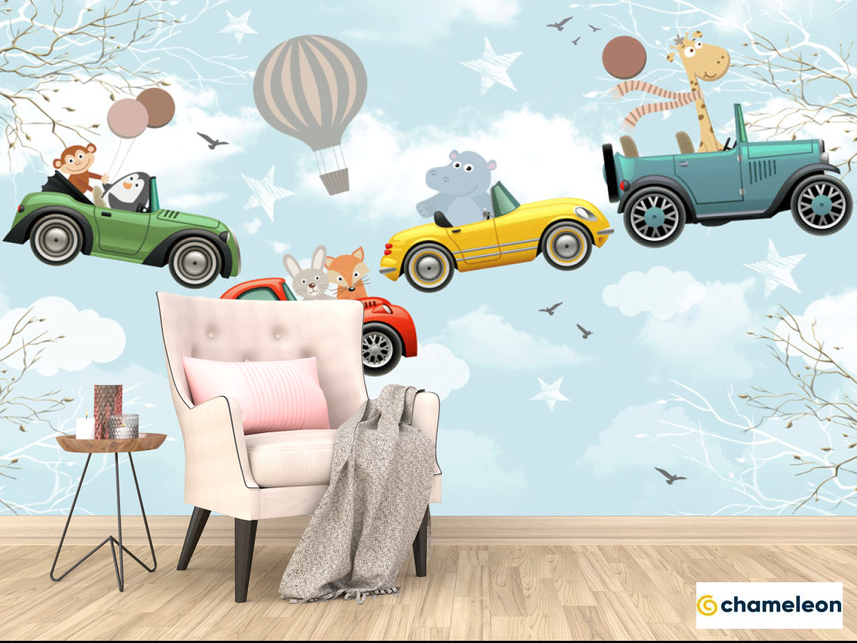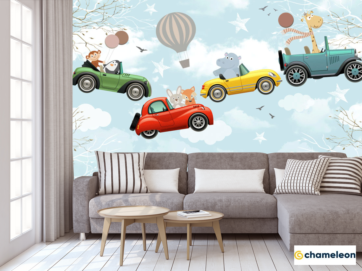 Фотообои «Фотообои Звери на машинке», (арт. 24055) - купить в интернет-магазине Хамелеон