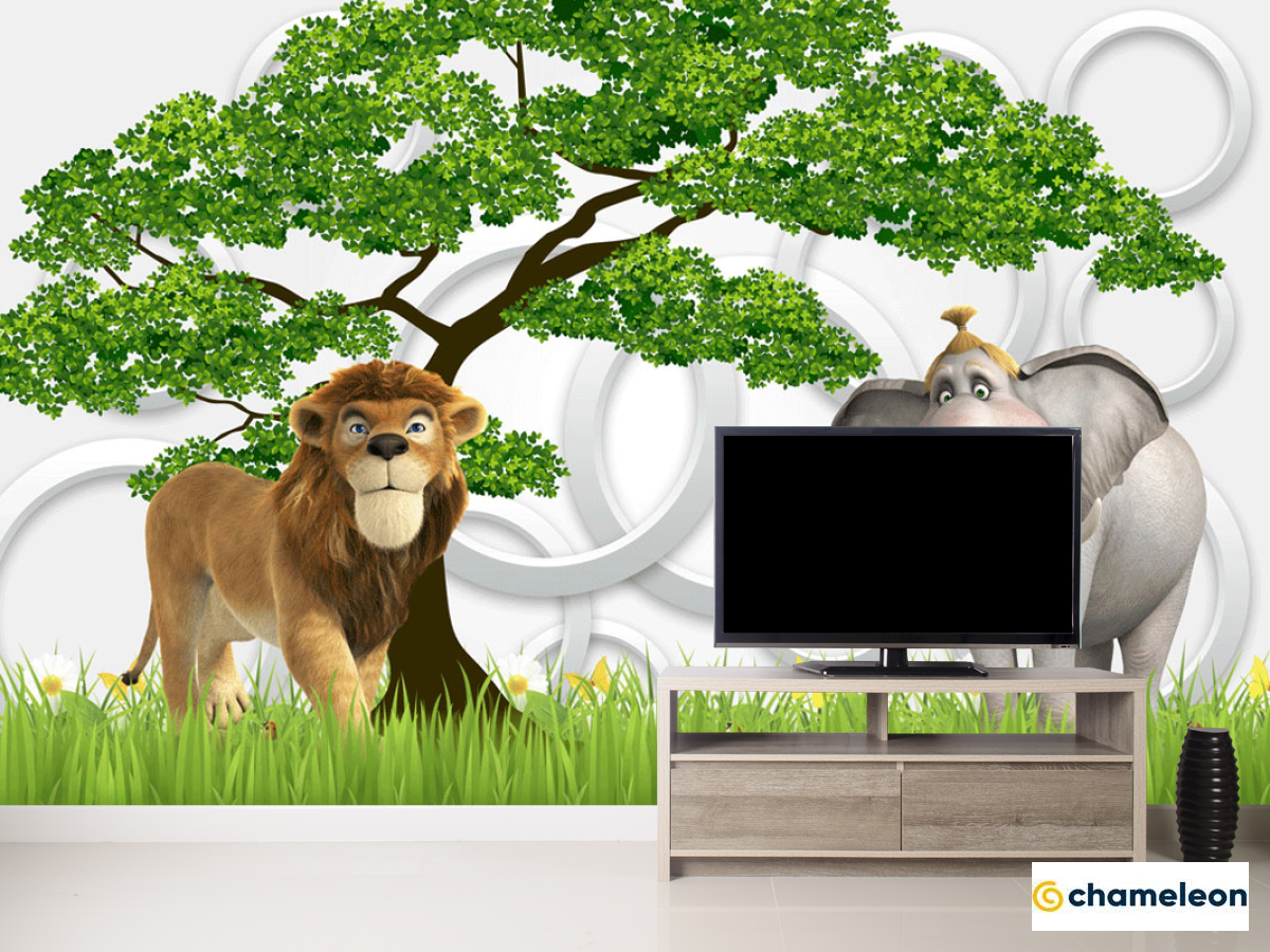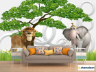 Фотообои «Фотообои Слон и лев 3д», (арт. 24112) - купить в интернет-магазине Хамелеон