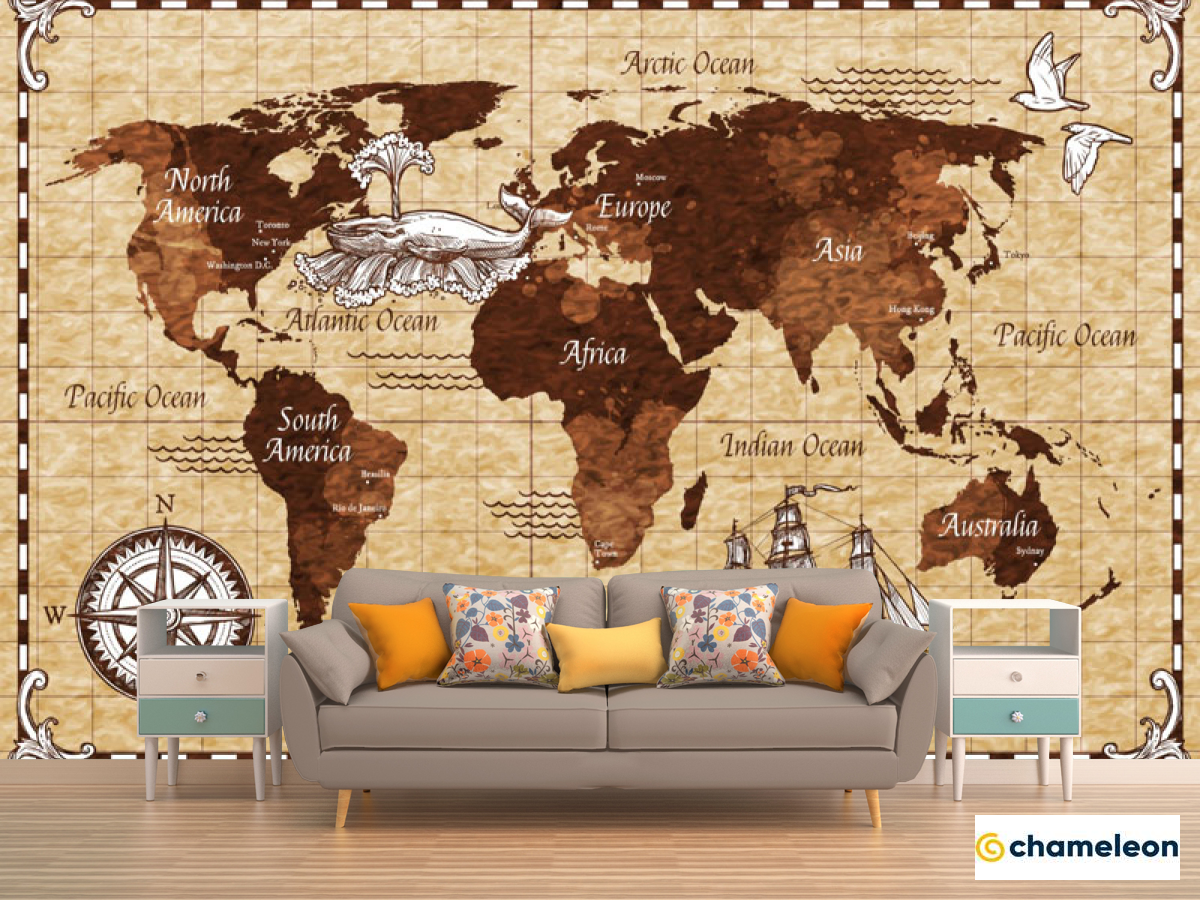Фотообои «Фотообои Винтажная карта детская коричневая», (арт. 24125) - купить в интернет-магазине Хамелеон
