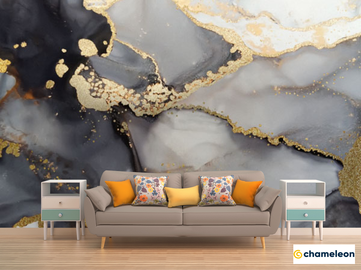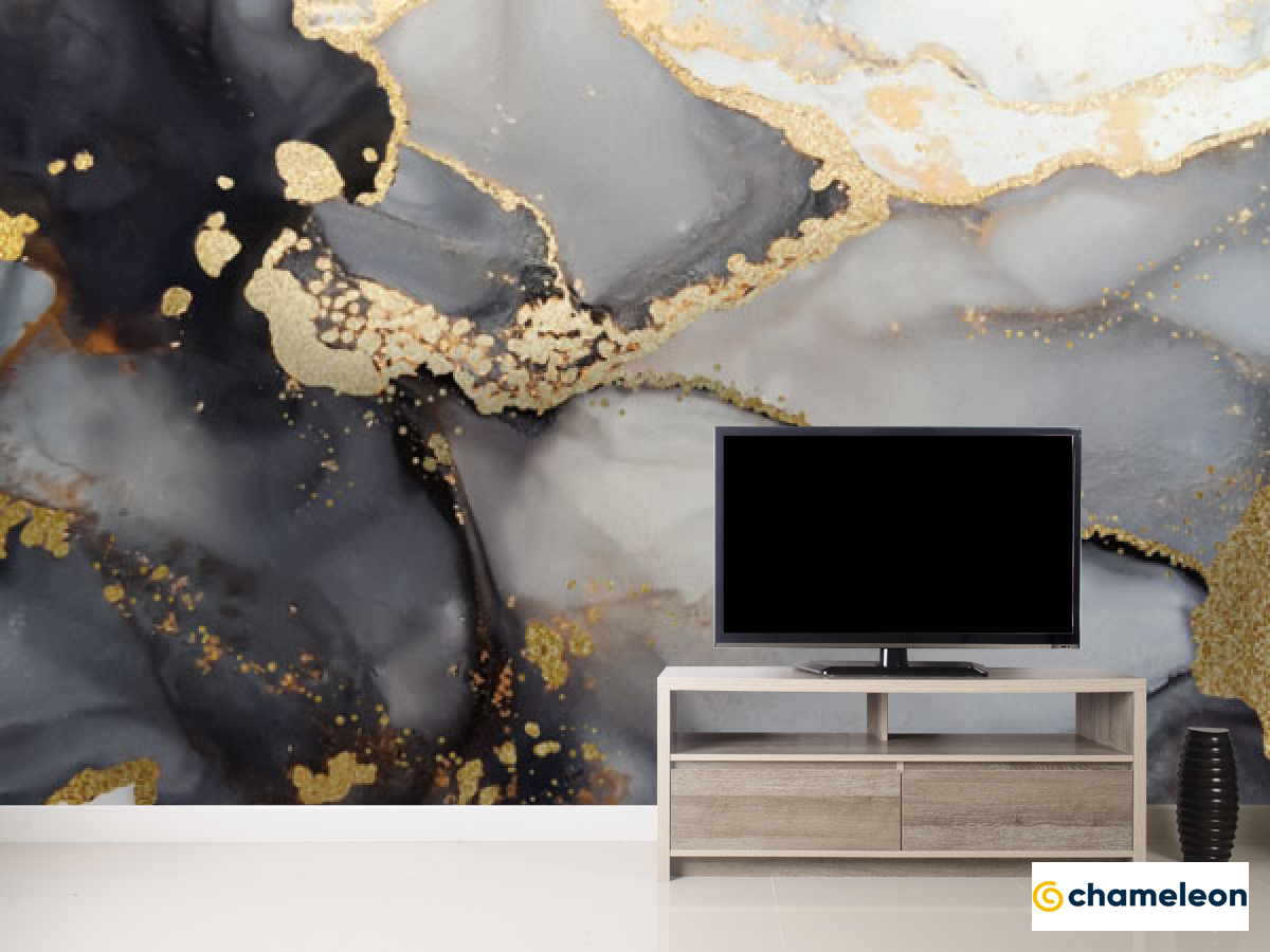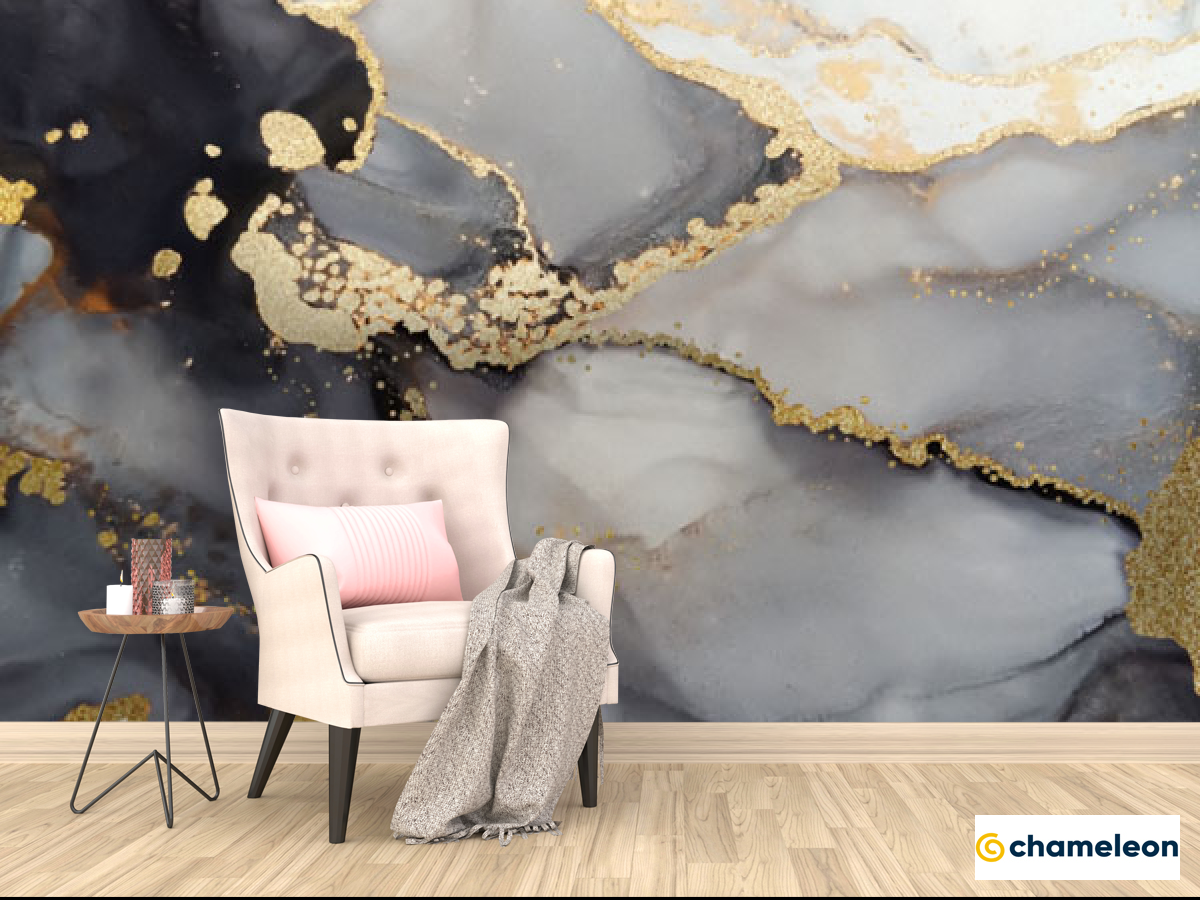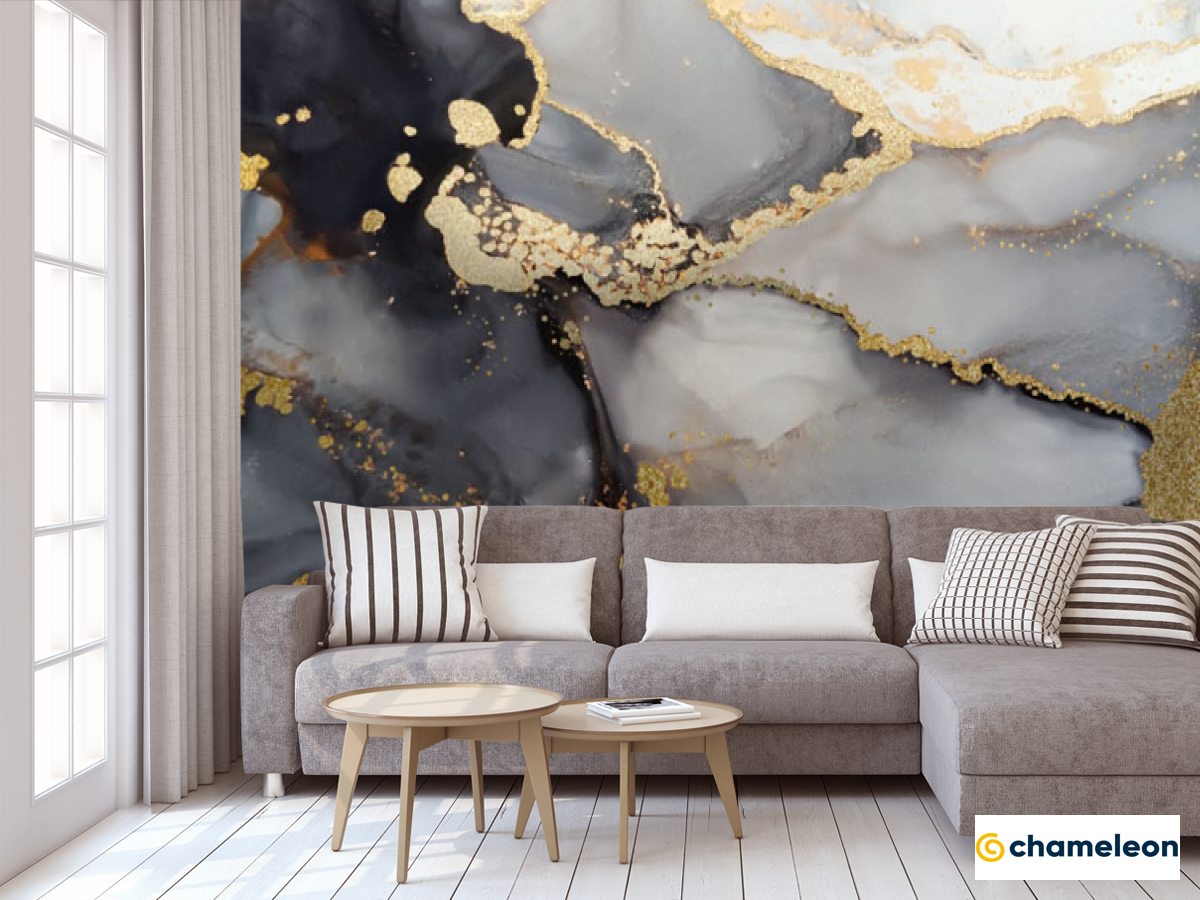 Фотообои «Фотообои чб флюид с золотом», (арт. 24617g) - купить в интернет-магазине Хамелеон