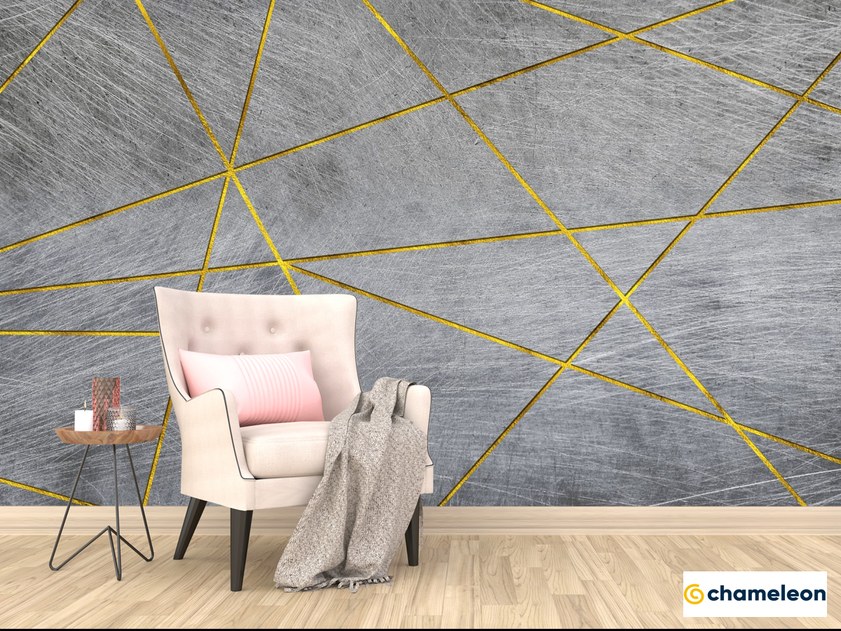 Фотообои серая стена с золотом