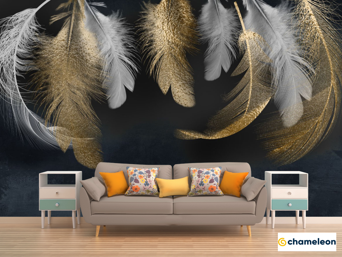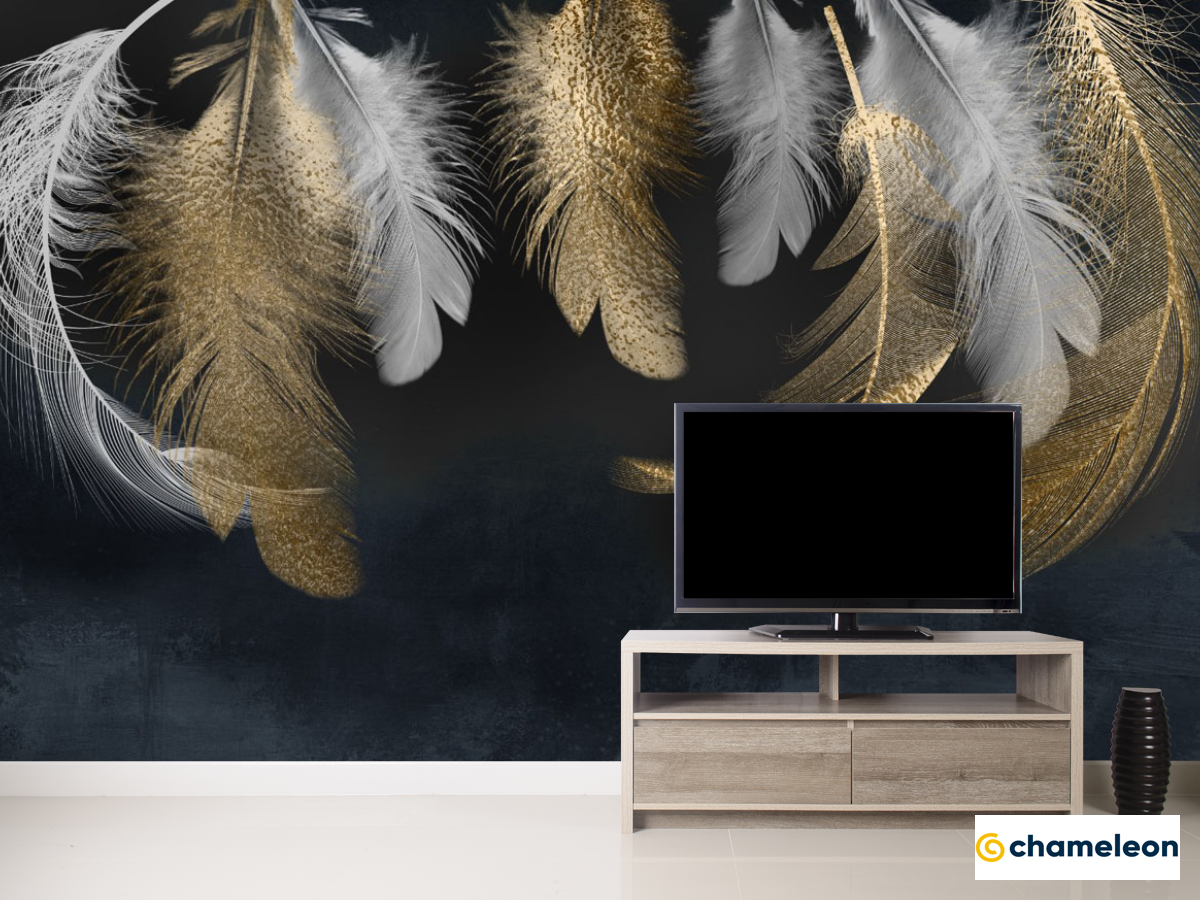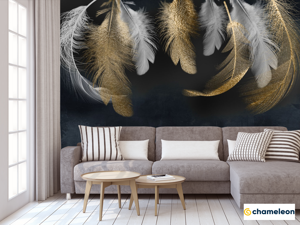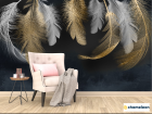 Фотообои «Фотообои золотые перья на чёрном», (арт. 24995g) - купить в интернет-магазине Хамелеон