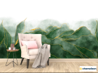 Фотообои «Фотообои зелёная акварель с золотом», (арт. 25910g) - купить в интернет-магазине Хамелеон