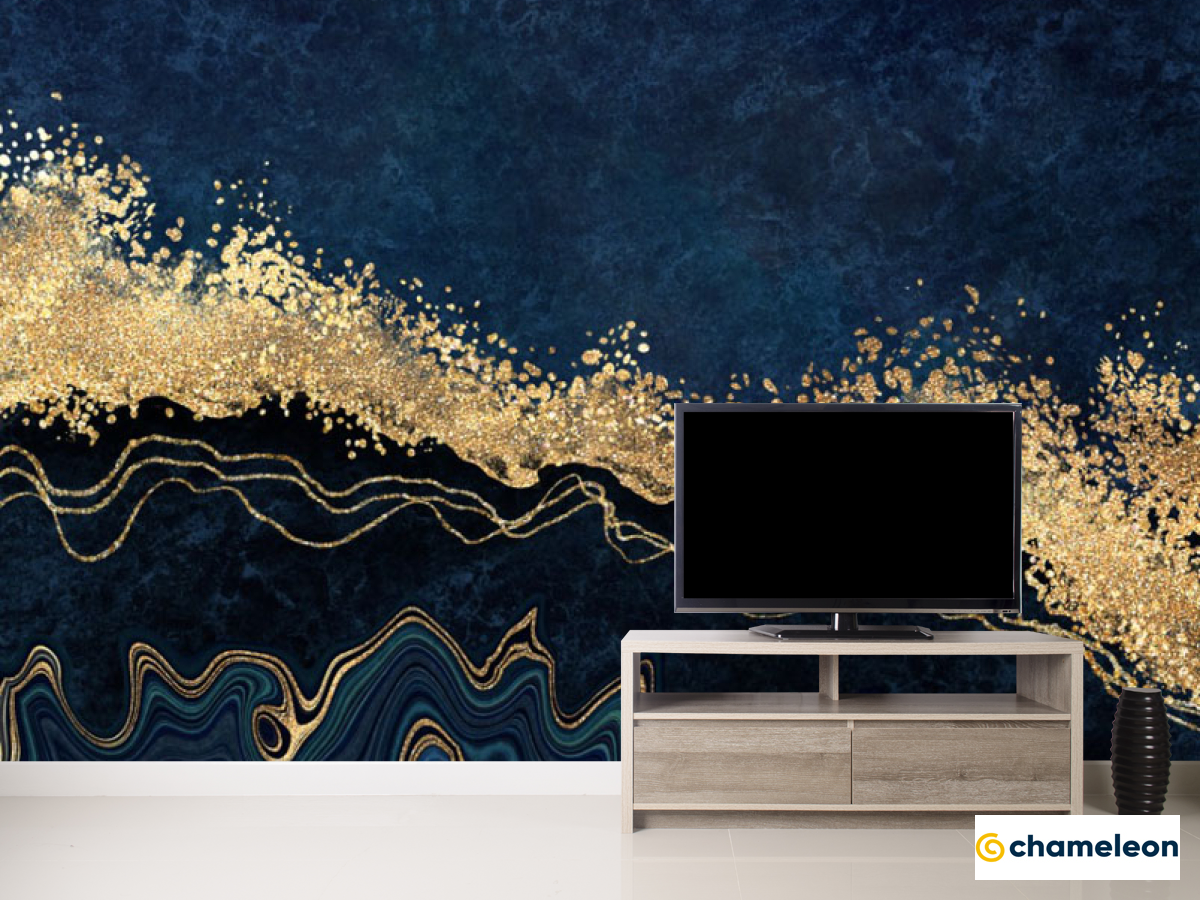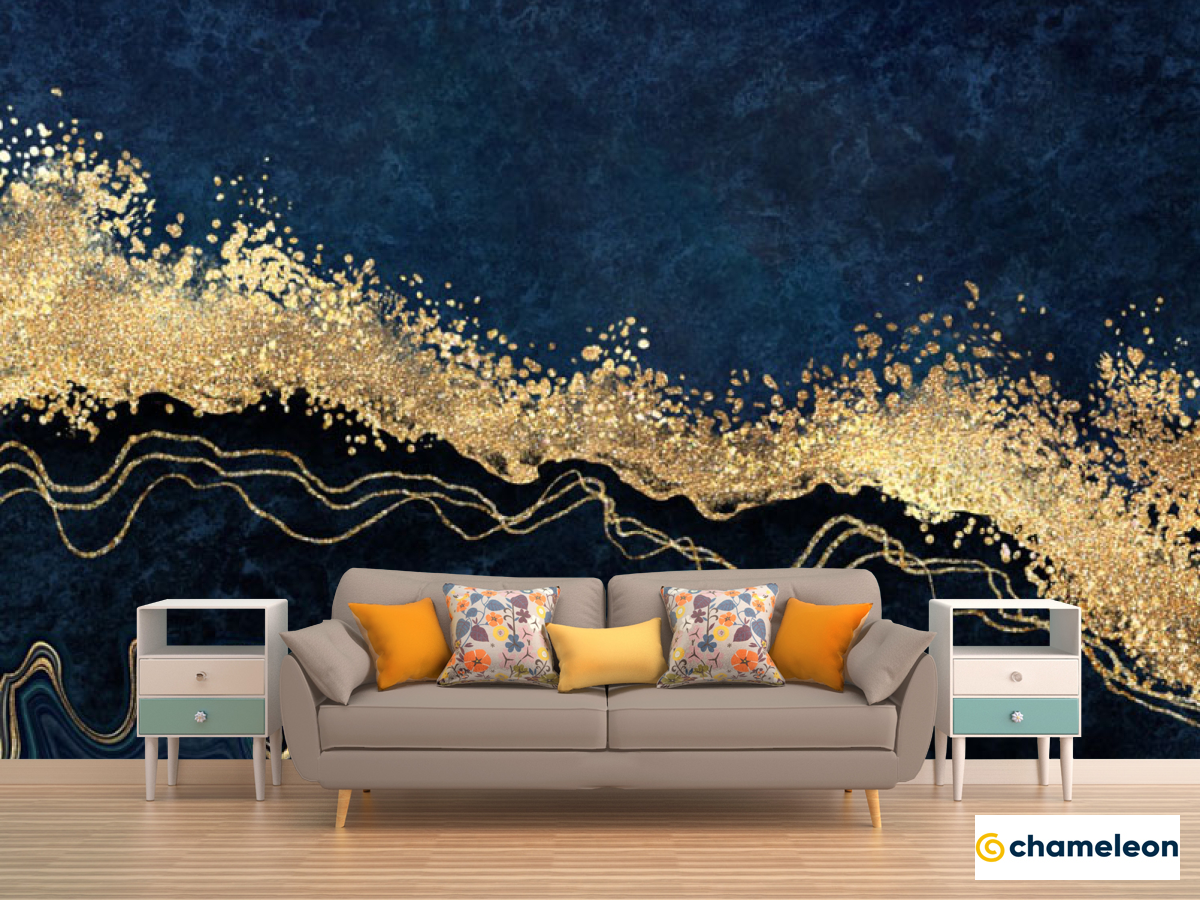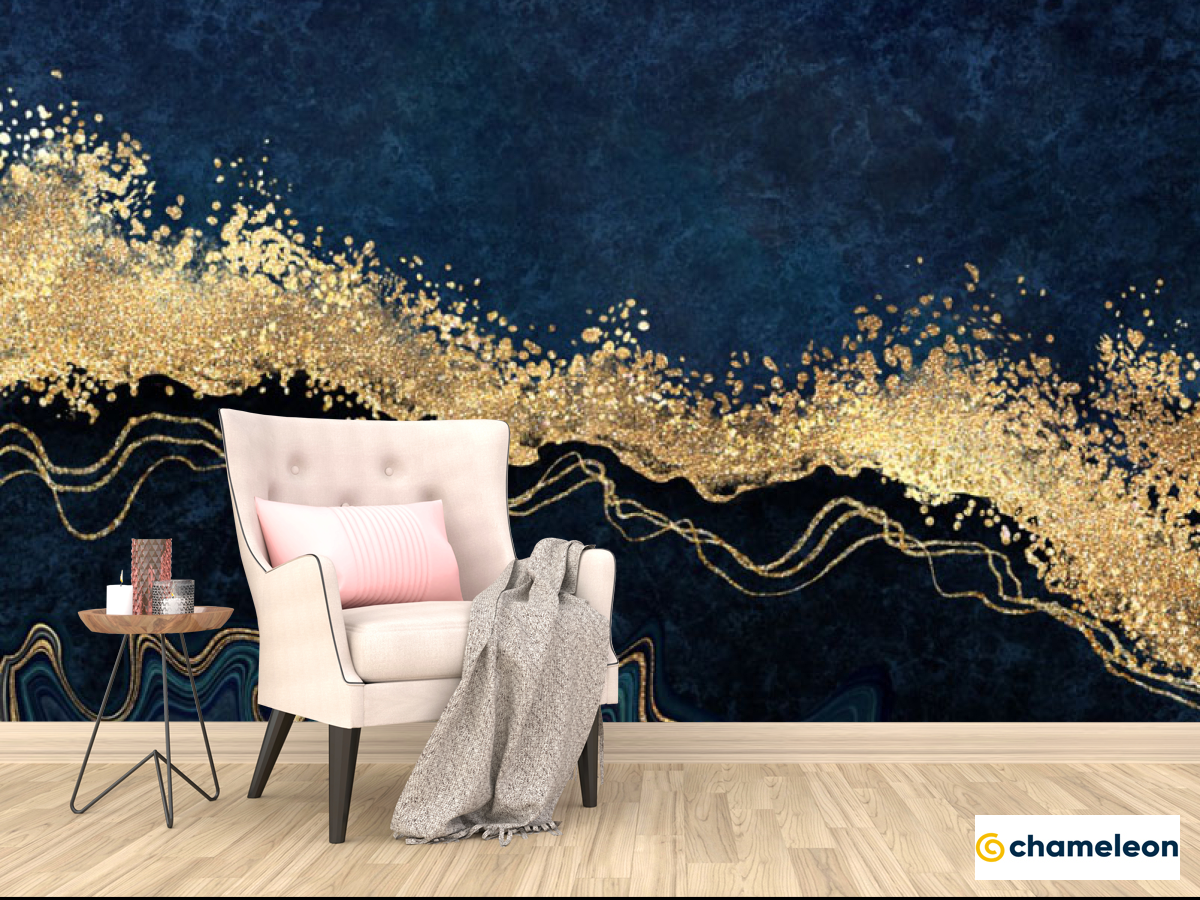 Фотообои синий мрамор золотой