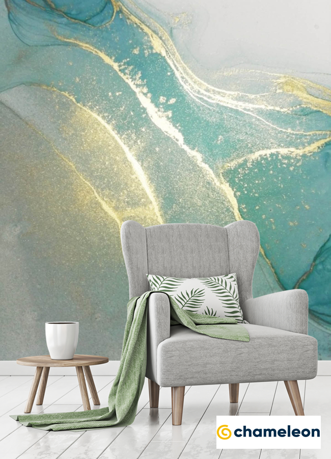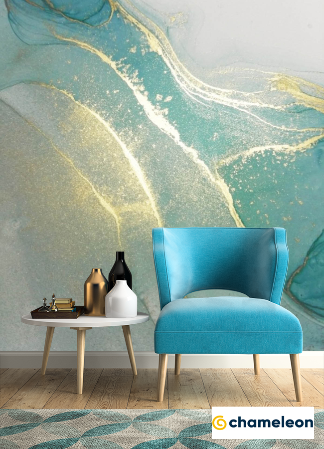 Фотообои «Фотообои Бирюзовый флюид с золотом», (арт. 26633) - купить в интернет-магазине Хамелеон