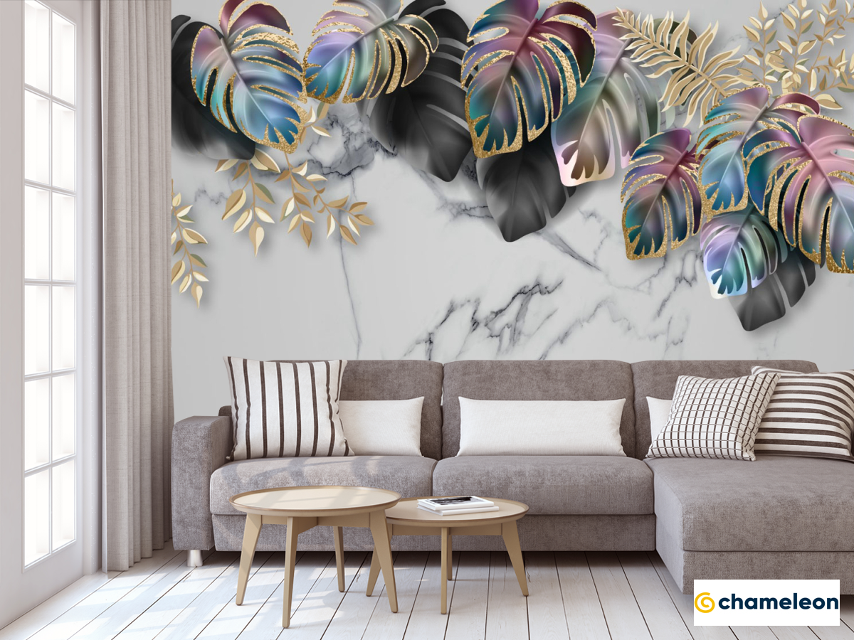 Фотообои «Фотообои тропические листья с золотом», (арт. 27629g) - купить в интернет-магазине Хамелеон
