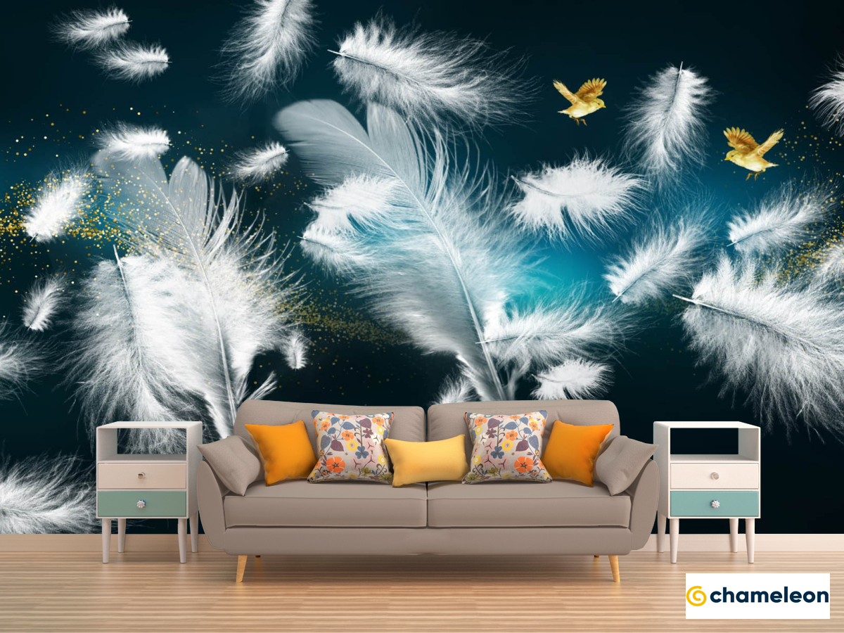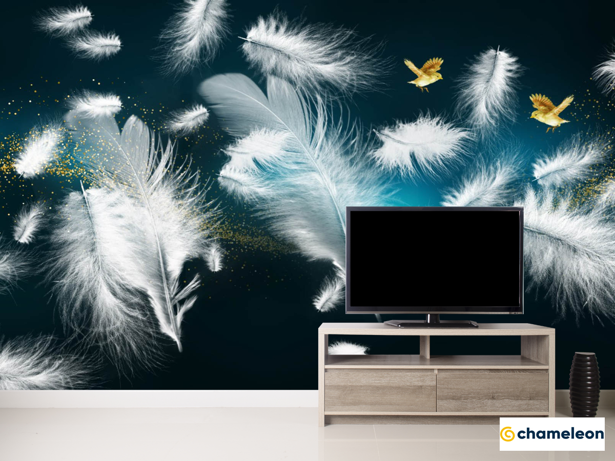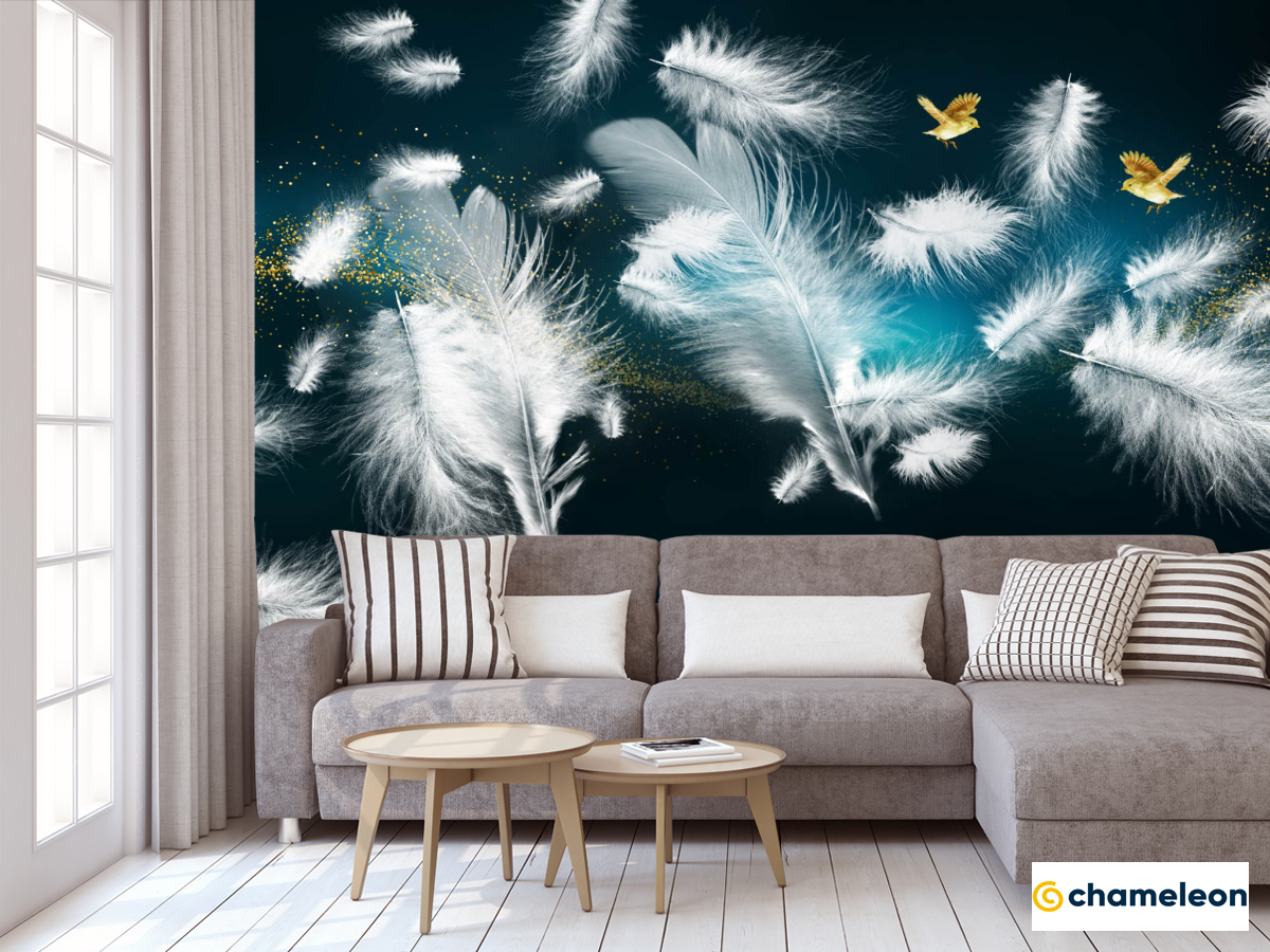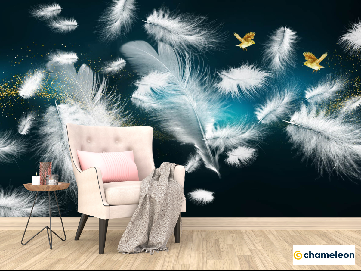 Фотообои «Фотообои Белые перья и золото», (арт. 27847) - купить в интернет-магазине Хамелеон
