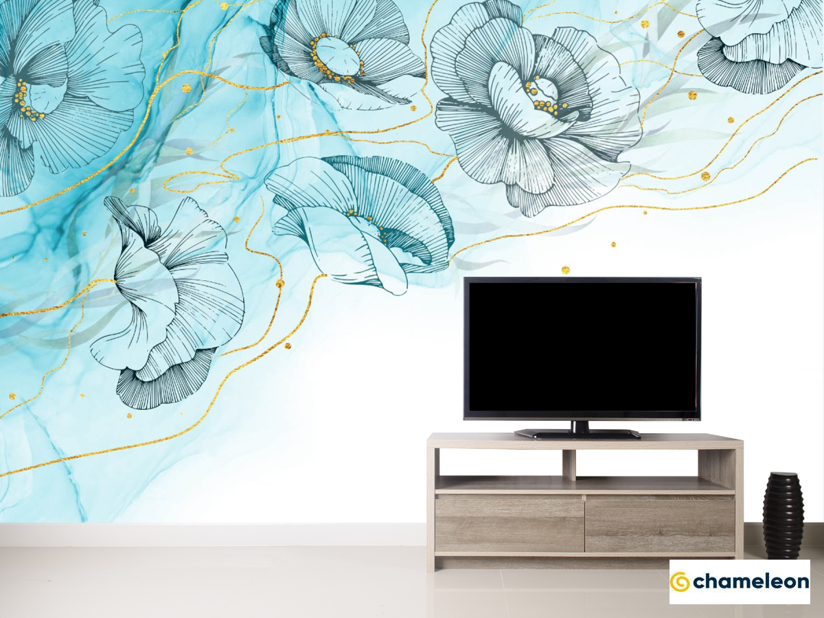 Фотообои «Фотообои Векторные дизайнерские цветы с золотом», (арт. 28195) - купить в интернет-магазине Хамелеон