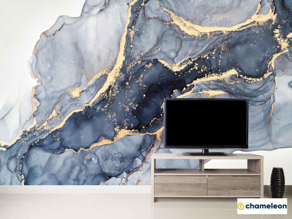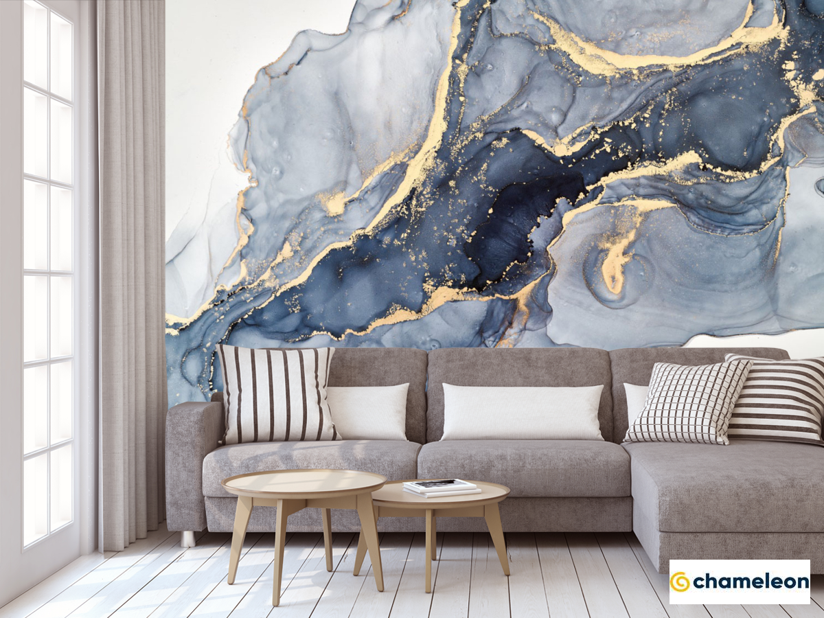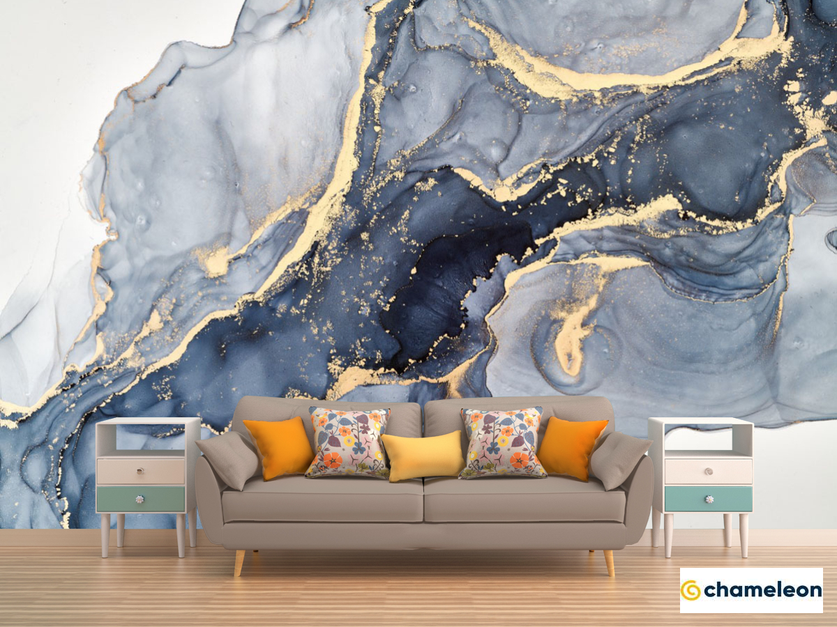 Фотообои «Фотообои синий флюид с золотом», (арт. 28293g) - купить в интернет-магазине Хамелеон