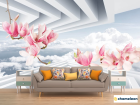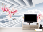 Фотообои 3д розовые ветви магнолии
