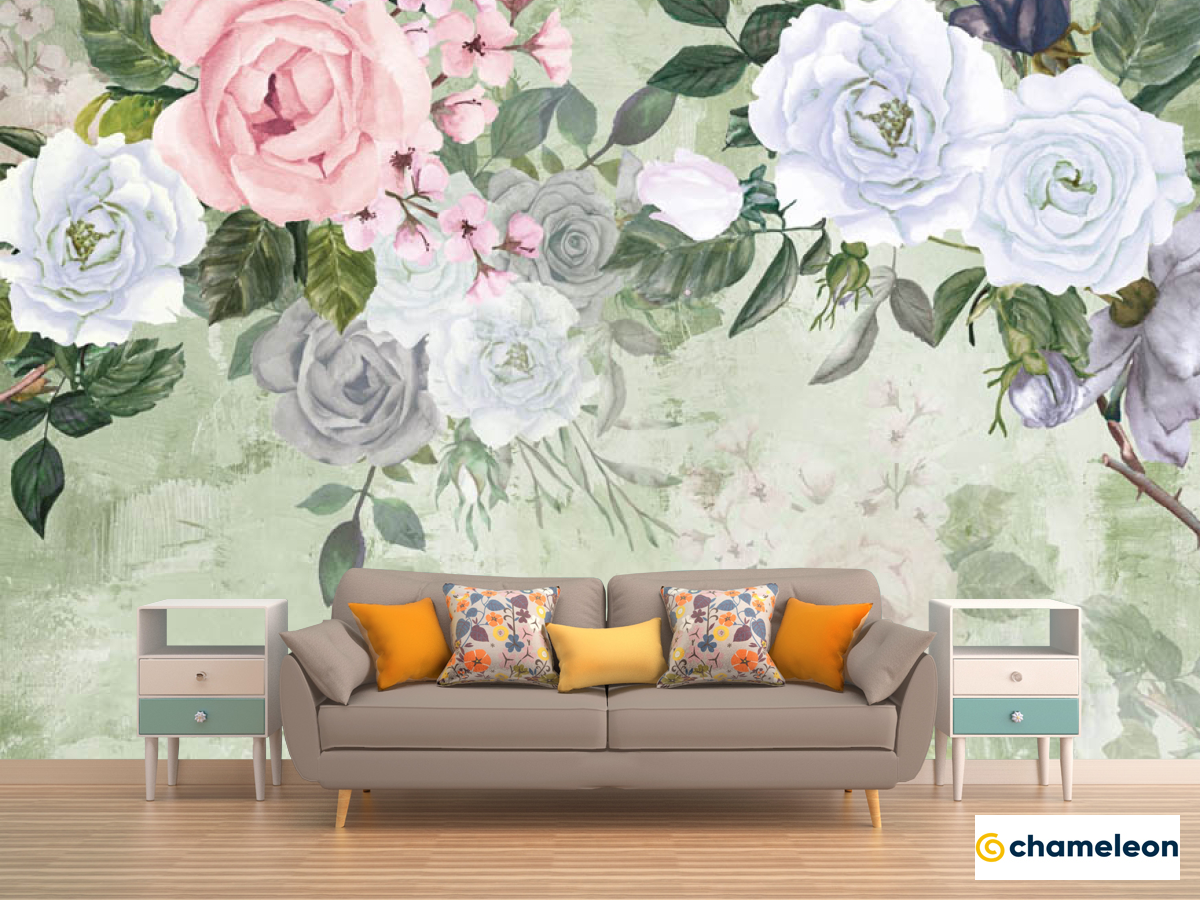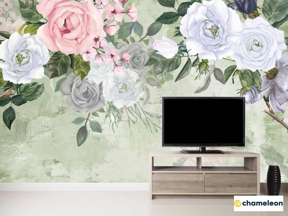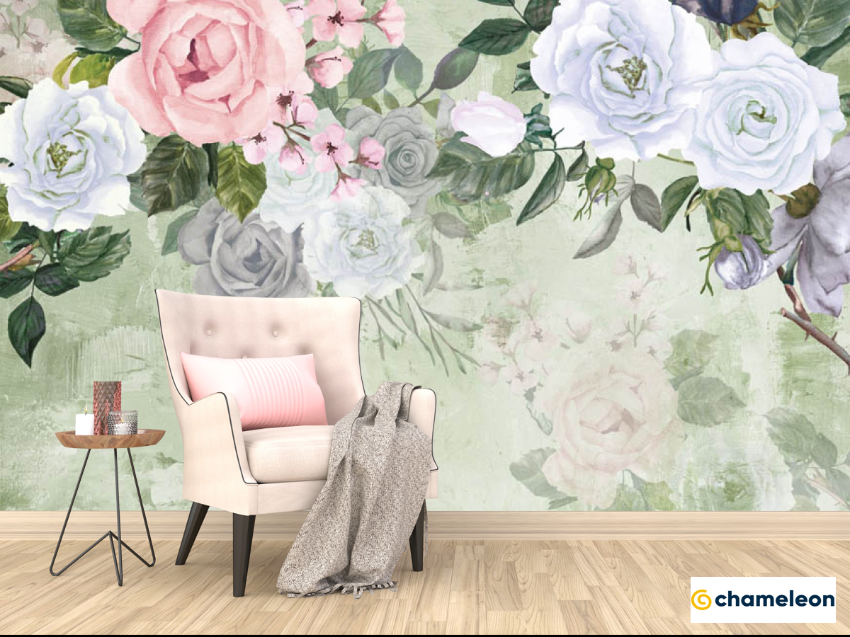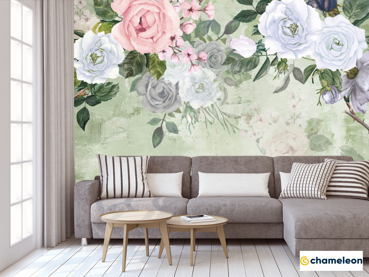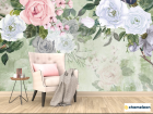 Фотообои «Фотообои Акварельные цветы на зелёном фоне», (арт. 29237) - купить в интернет-магазине Хамелеон