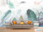 Фотообои «Фотообои Разноцветные перья на бетоне», (арт. 29274) - купить в интернет-магазине Хамелеон