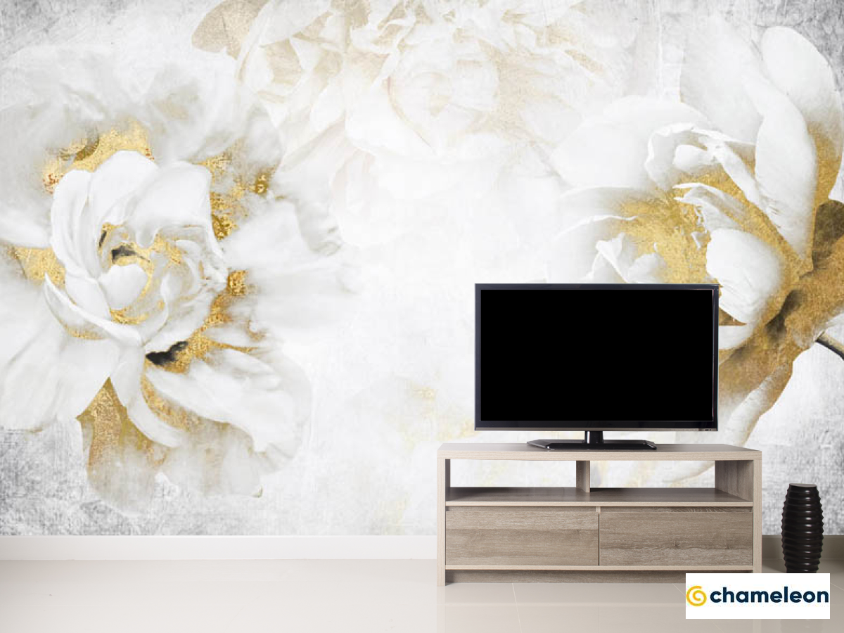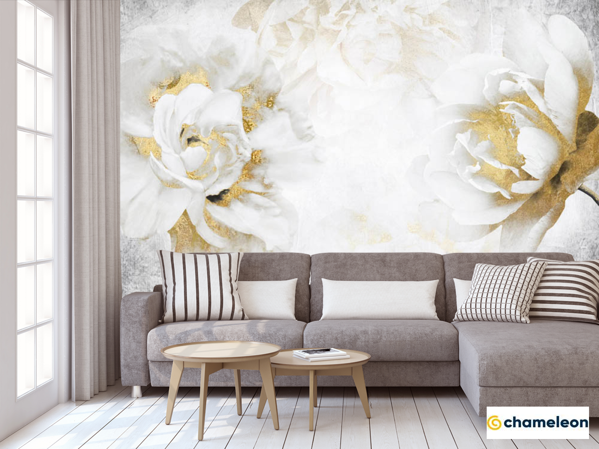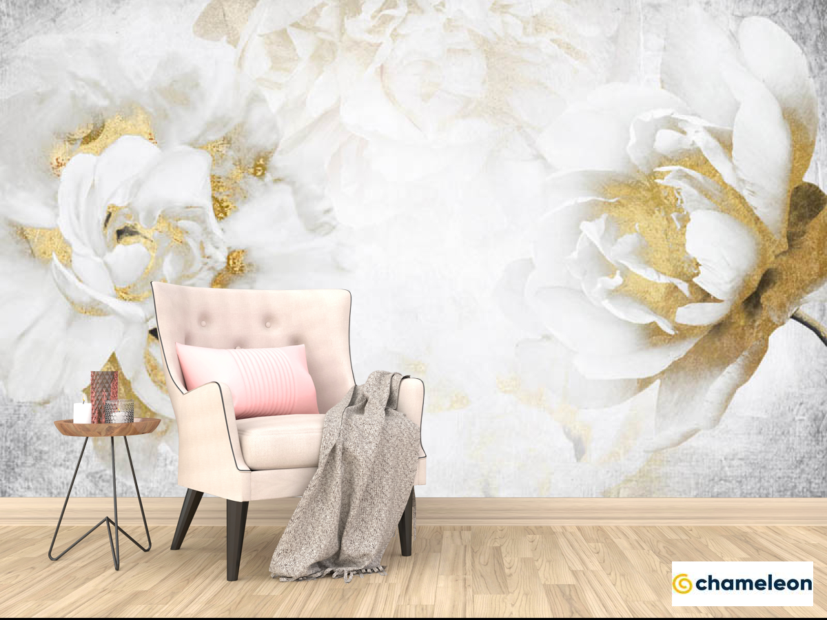 Фотообои «Фотообои Белые цветы с золотом», (арт. 29579) - купить в интернет-магазине Хамелеон