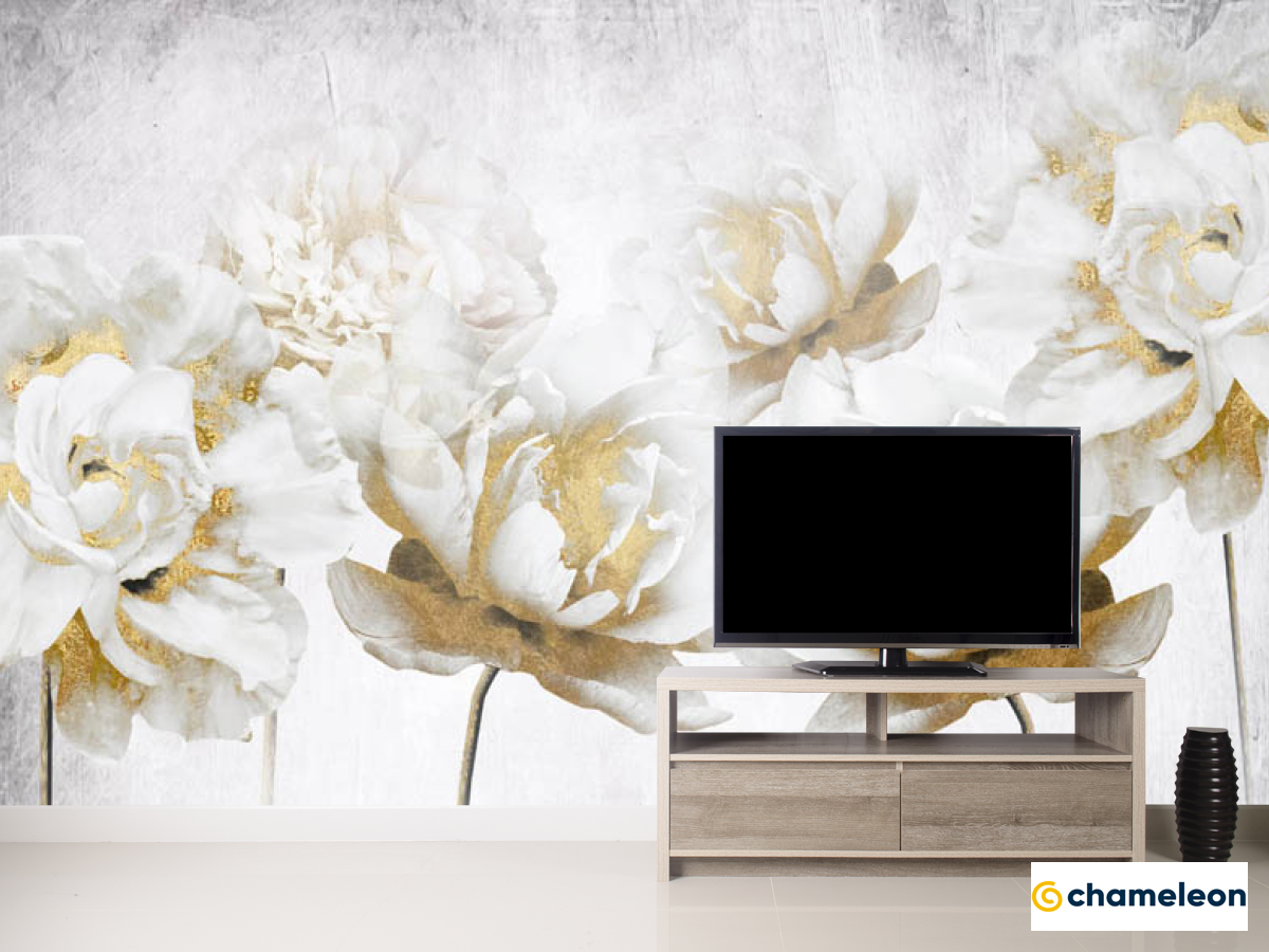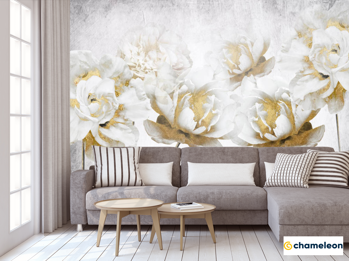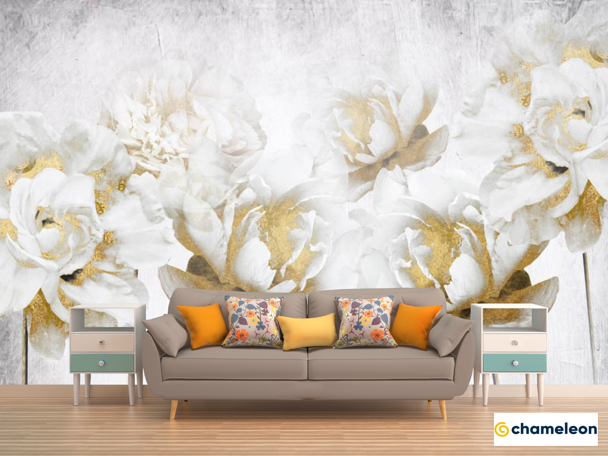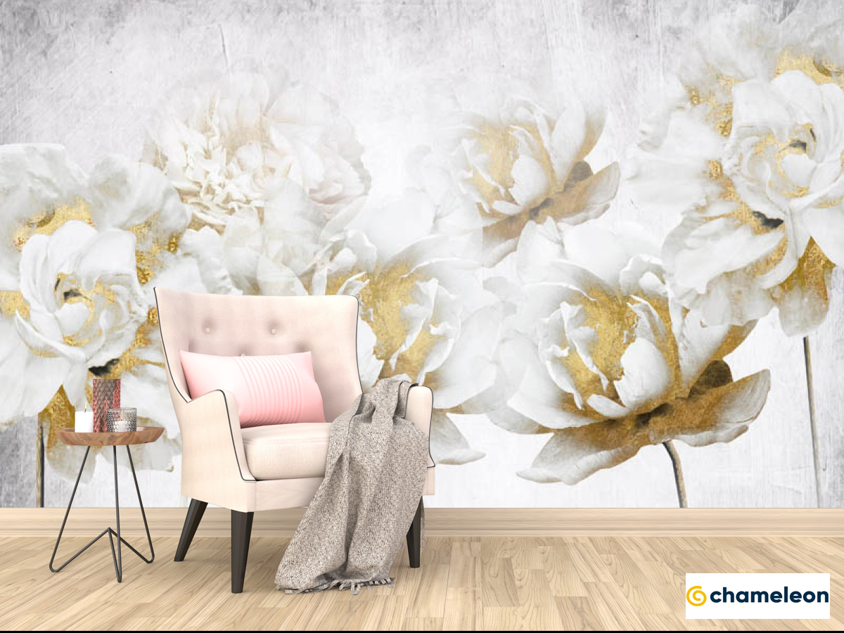 Фотообои «Фотообои Белые цветы с золотом», (арт. 29580) - купить в интернет-магазине Хамелеон