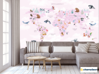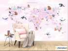 Фотообои Карта детская с облачками на украинском языке в розовом цвете.