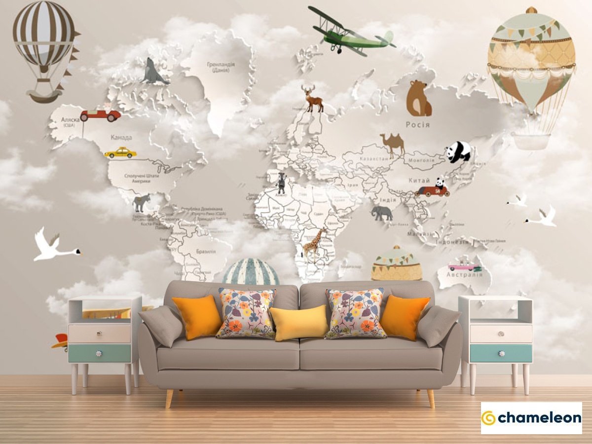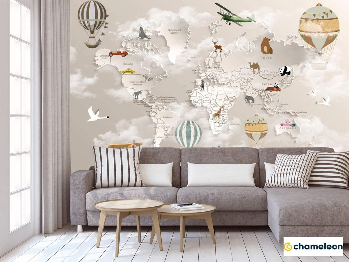 Фотообои «Фотообои Коричневая 3д карта детская на украинском», (арт. 30968) - купить в интернет-магазине Хамелеон