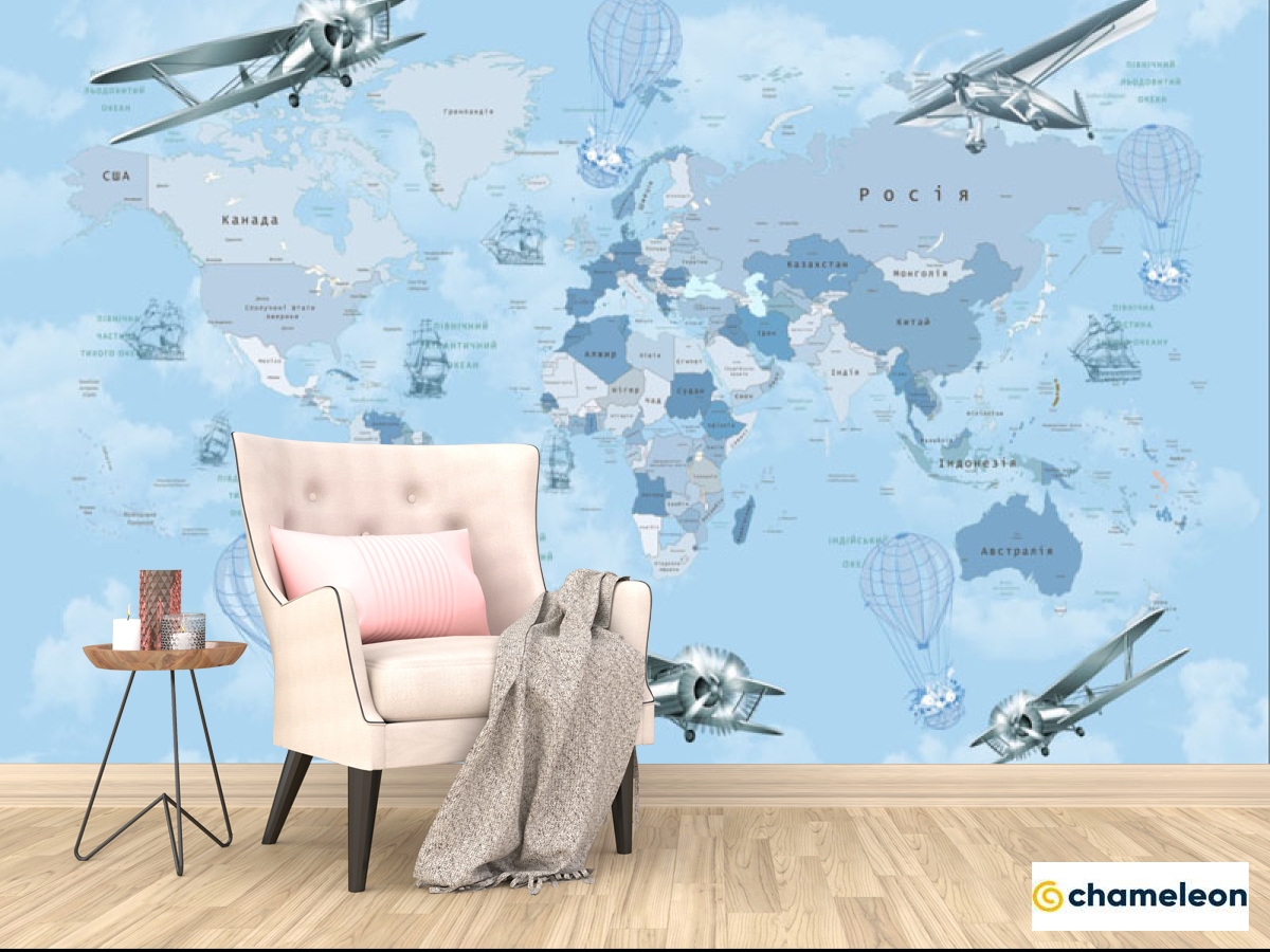 Фотообои «Фотообои Голубая карта на украинском с самолетами», (арт. 31047) - купить в интернет-магазине Хамелеон
