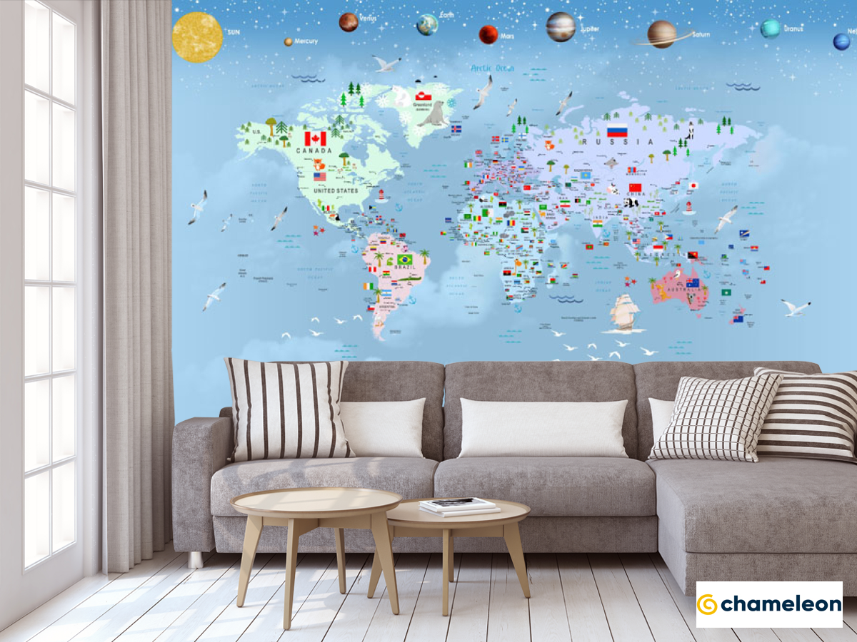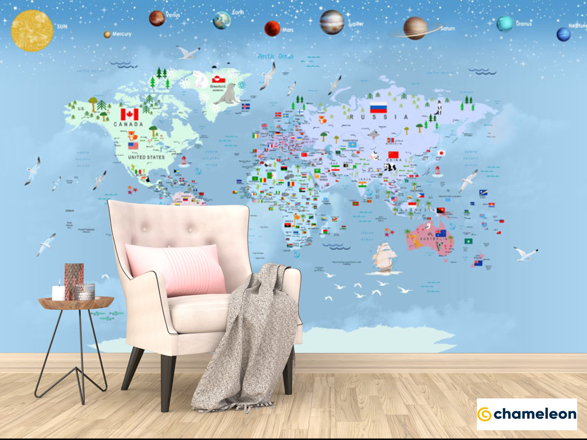 Фотообои «Фотообои Голубая карта с планетами», (арт. 31797) - купить в интернет-магазине Хамелеон