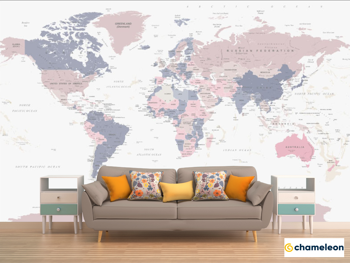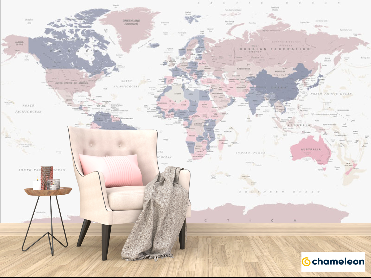 Фотообои «Фотообои Фиолетово-розовая карта для девочки», (арт. 31803) - купить в интернет-магазине Хамелеон