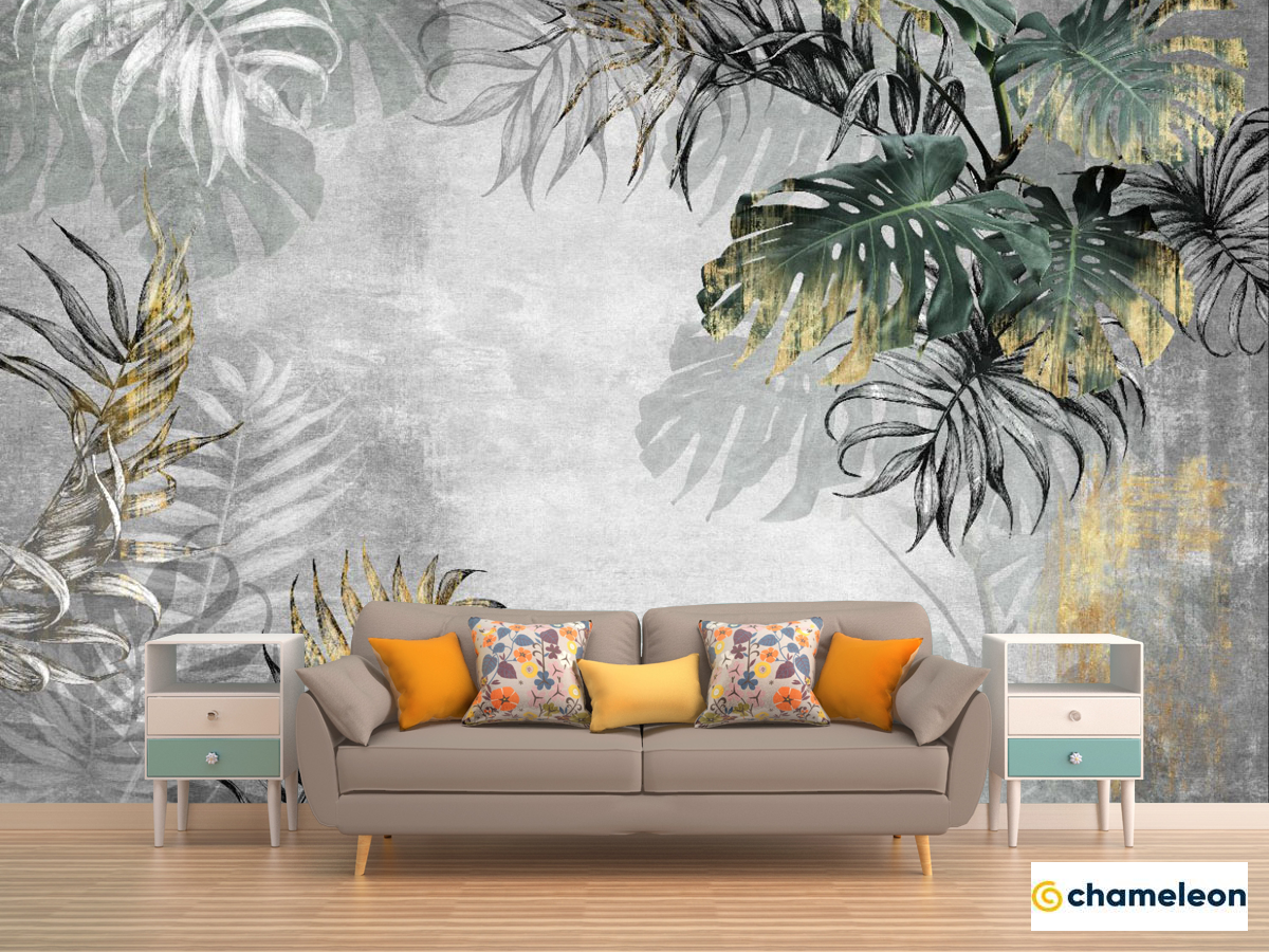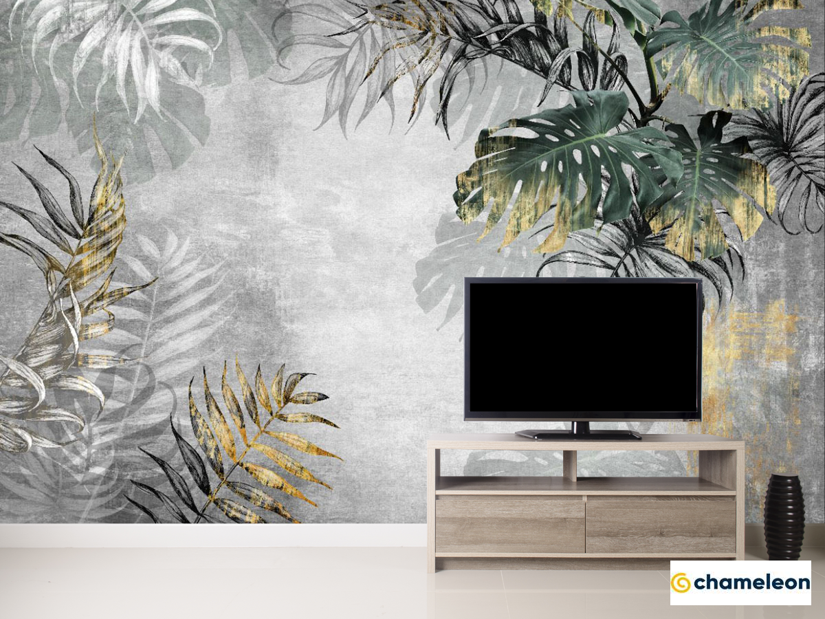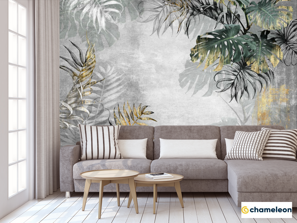 Фотообои «Фотообои тропические листья с золотом», (арт. 31813g) - купить в интернет-магазине Хамелеон