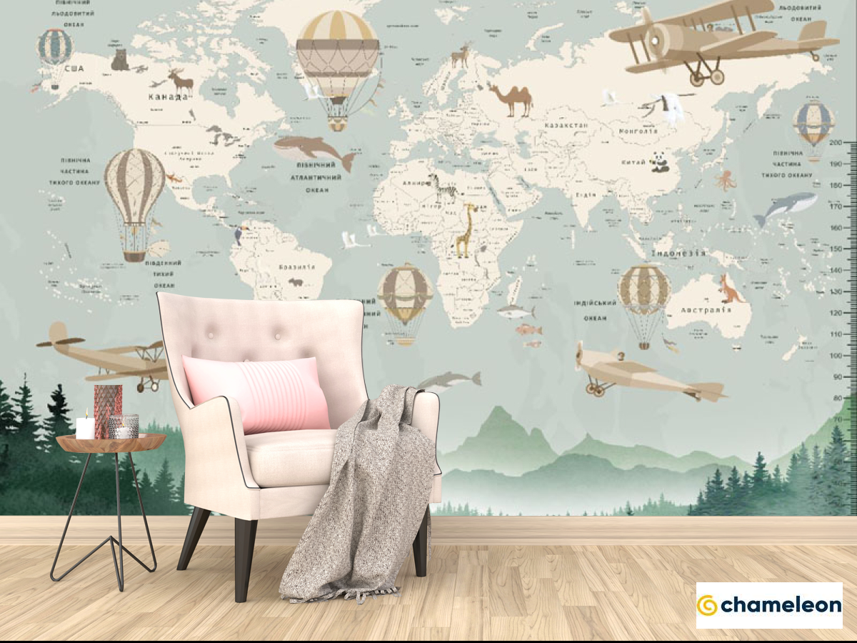 Фотообои «Фотообои Зеленая карта детская с елками», (арт. 31839) - купить в интернет-магазине Хамелеон