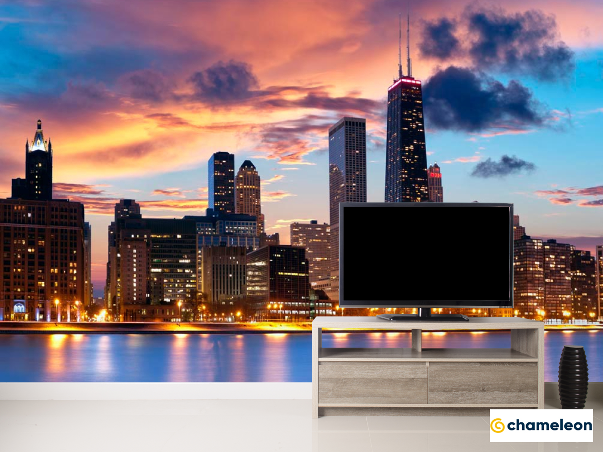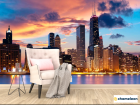 Фотообои «Фотообои Закат, город, вода в Чикаго», (арт. 3242) - купить в интернет-магазине Хамелеон