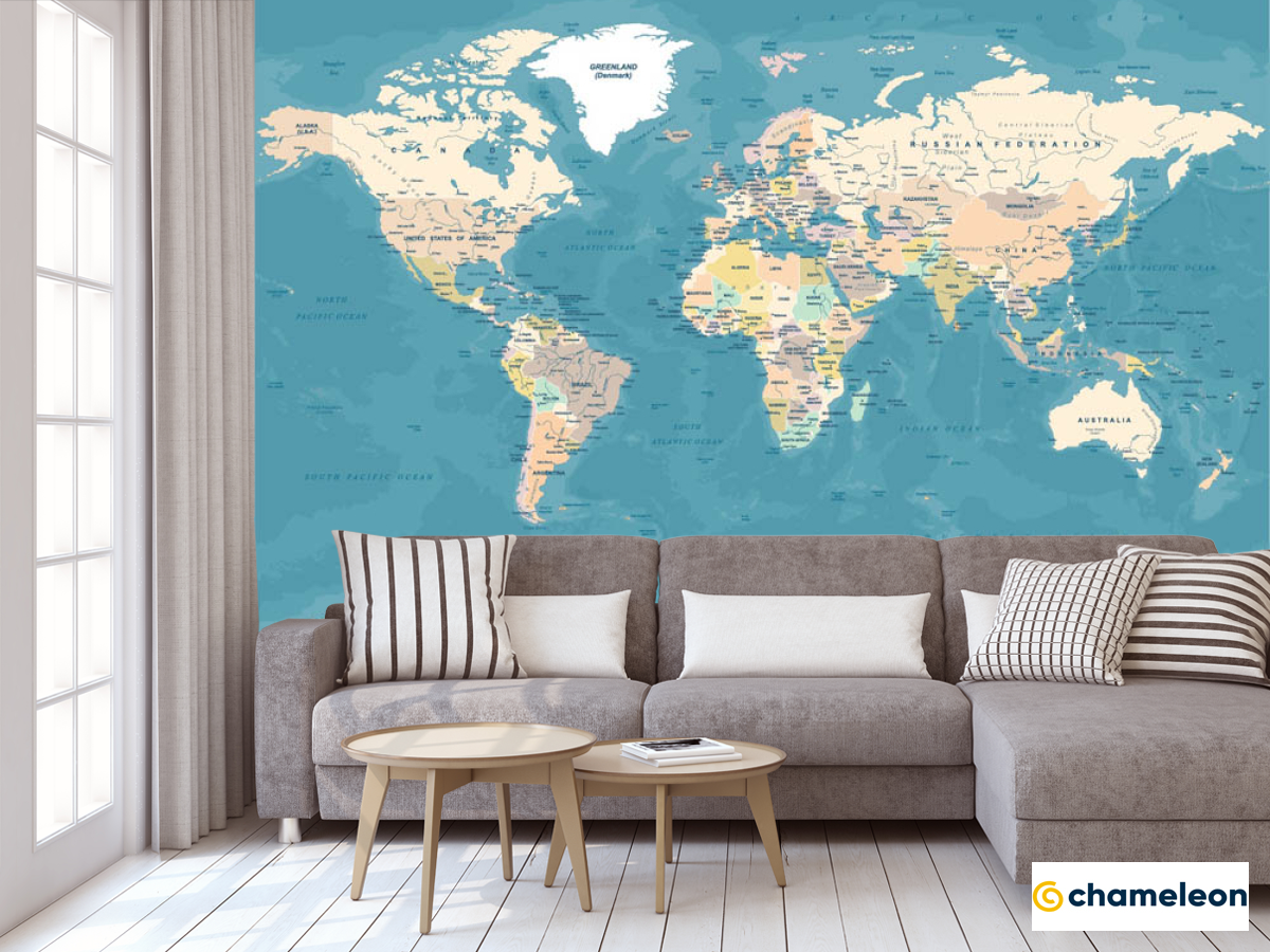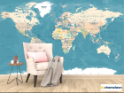 Фотообои «Фотообои Карта мира на бирюзовом фоне», (арт. 32841) - купить в интернет-магазине Хамелеон