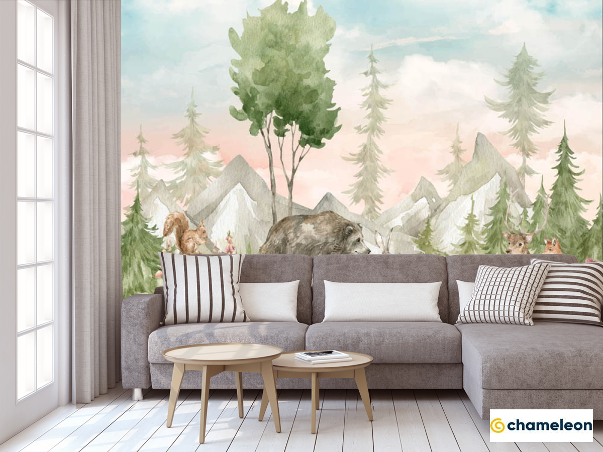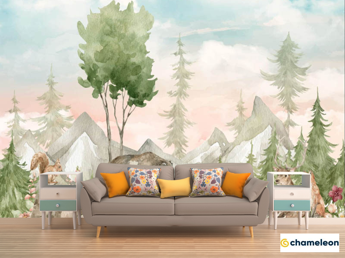 Фотообои «Фотообои Животные в горах акварель», (арт. 33003) - купить в интернет-магазине Хамелеон