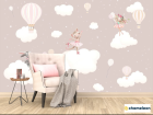Фотообои Зайчата на тучках для девочек