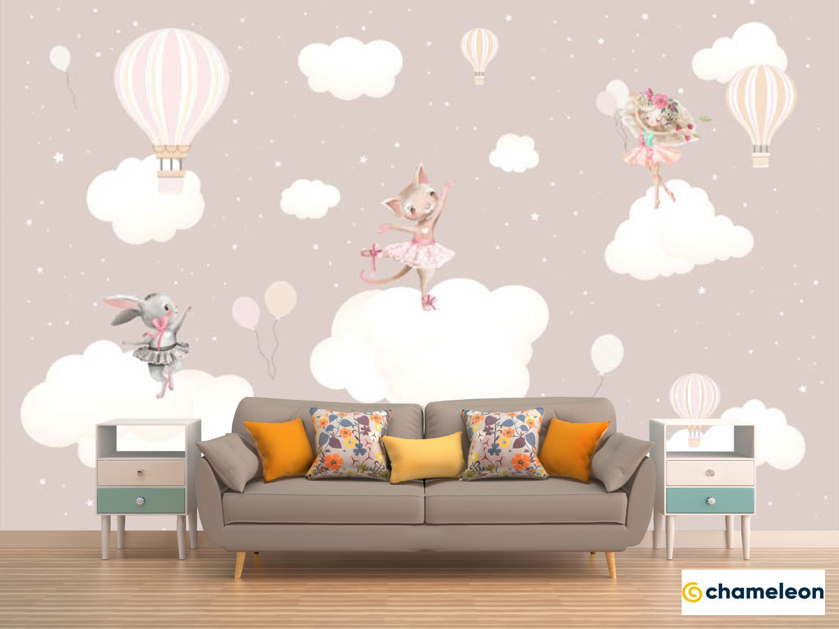 Фотообои «Фотообои Зайчата на тучках для девочек», (арт. 33005) - купить в интернет-магазине Хамелеон