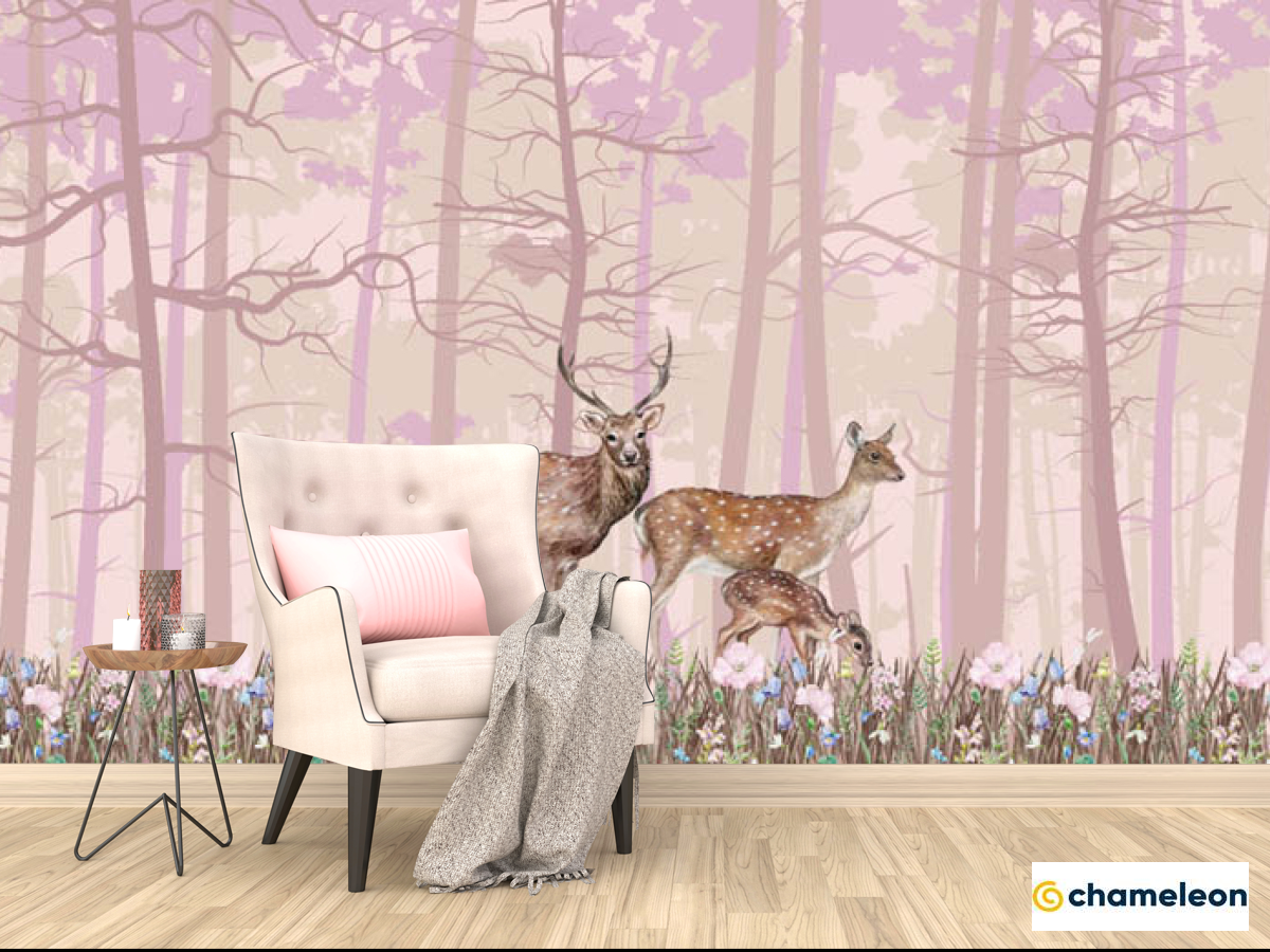 Фотообои «Фотообои Олени в розовом лесу», (арт. 33021) - купить в интернет-магазине Хамелеон