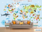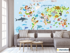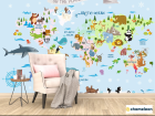 Фотообои Голубая карта на английском с животными