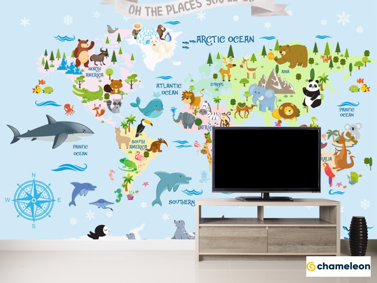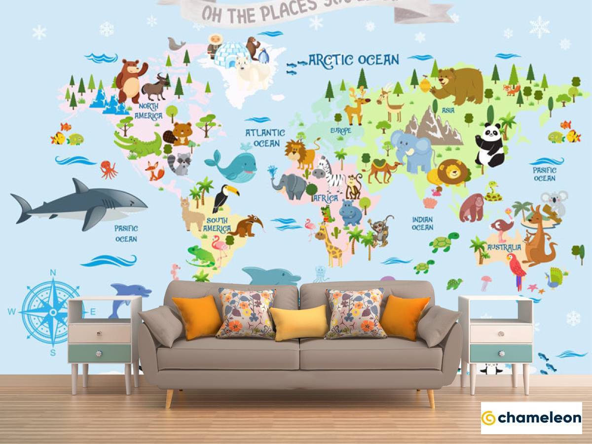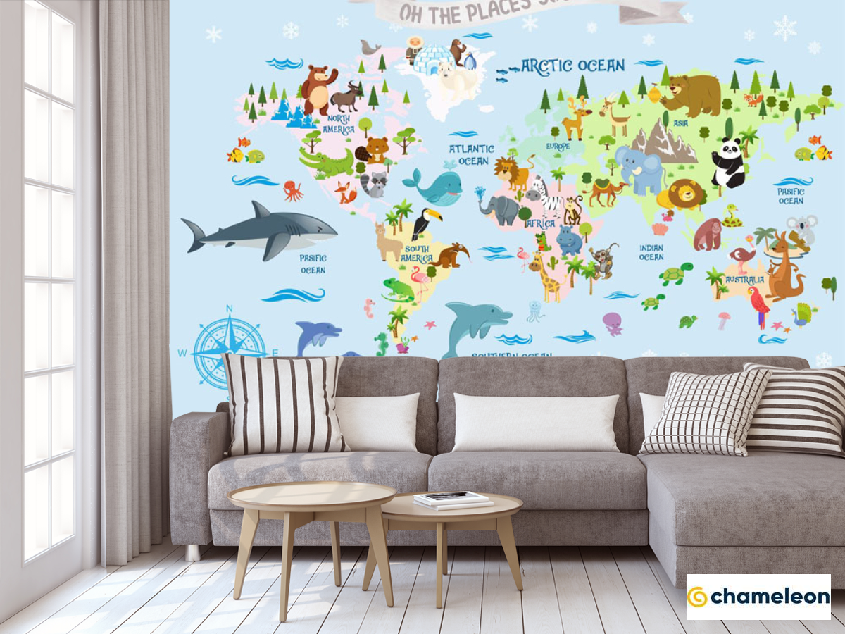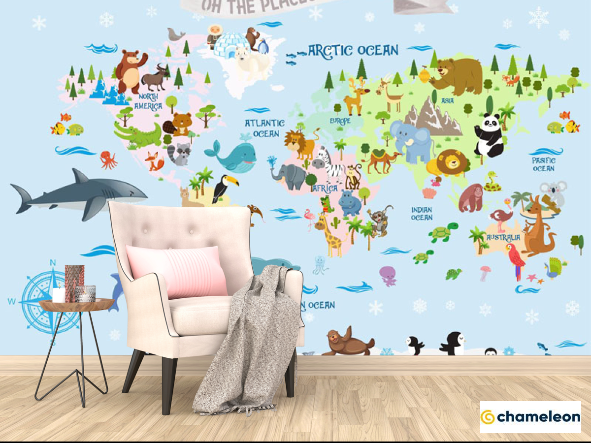 Фотообои «Фотообои Голубая карта на английском с животными», (арт. 33066) - купить в интернет-магазине Хамелеон