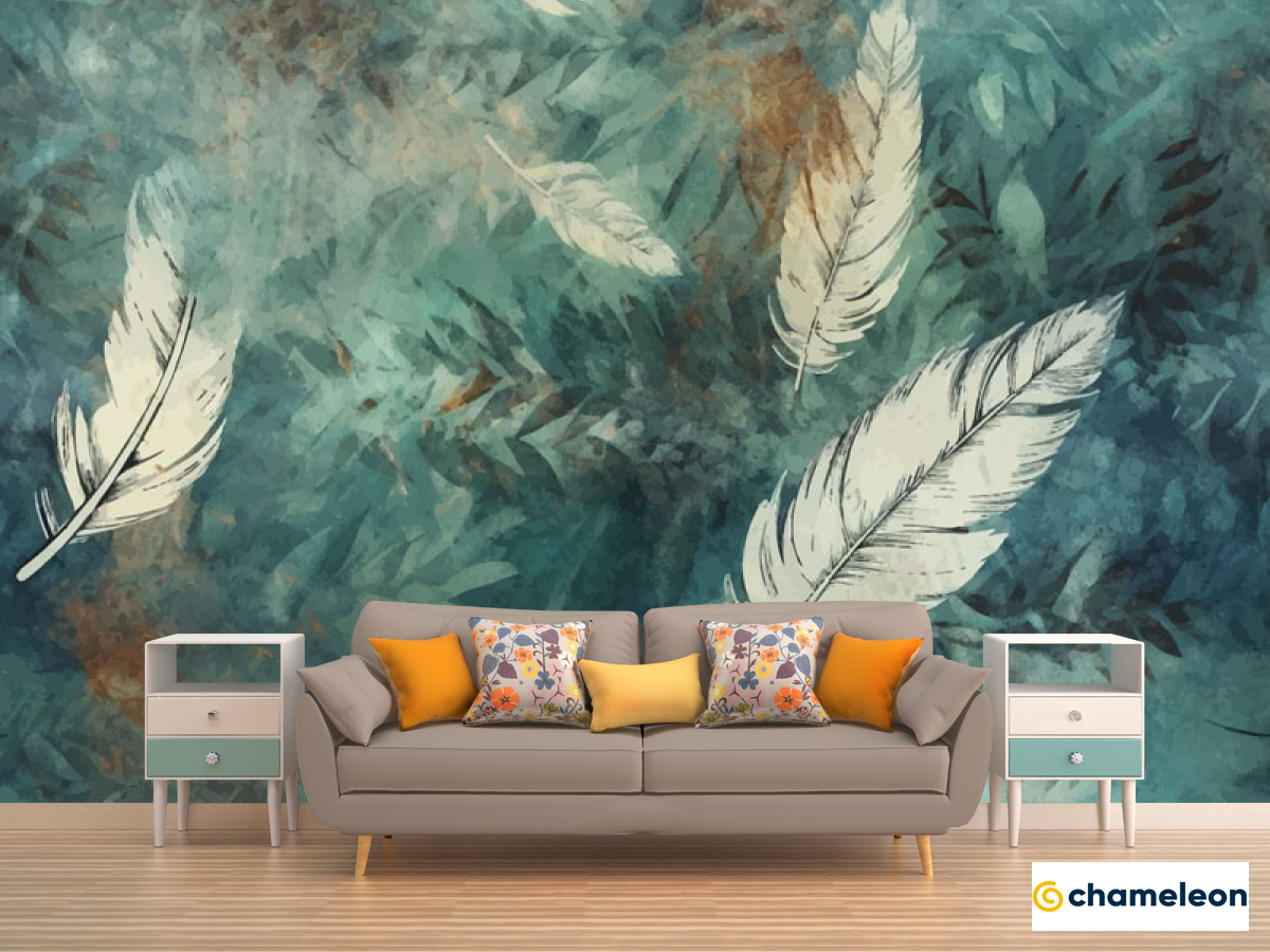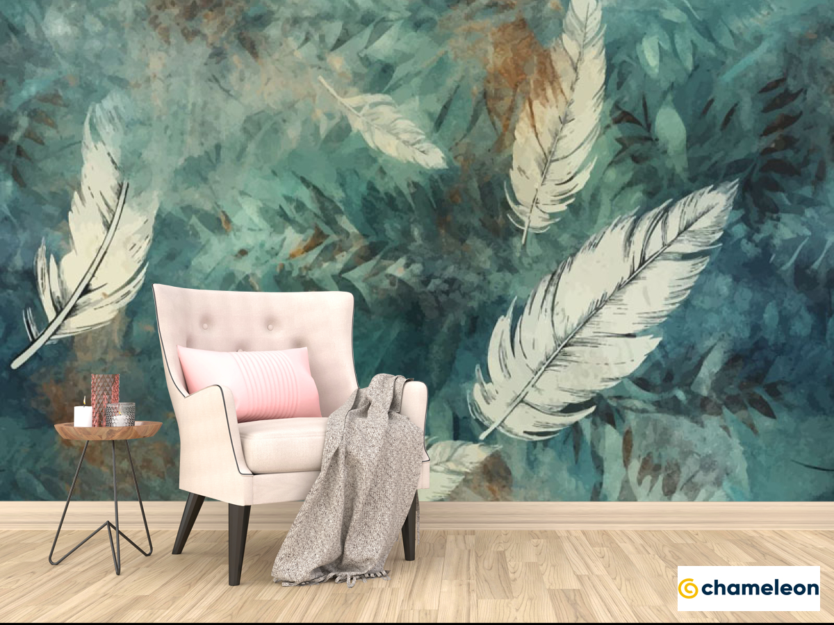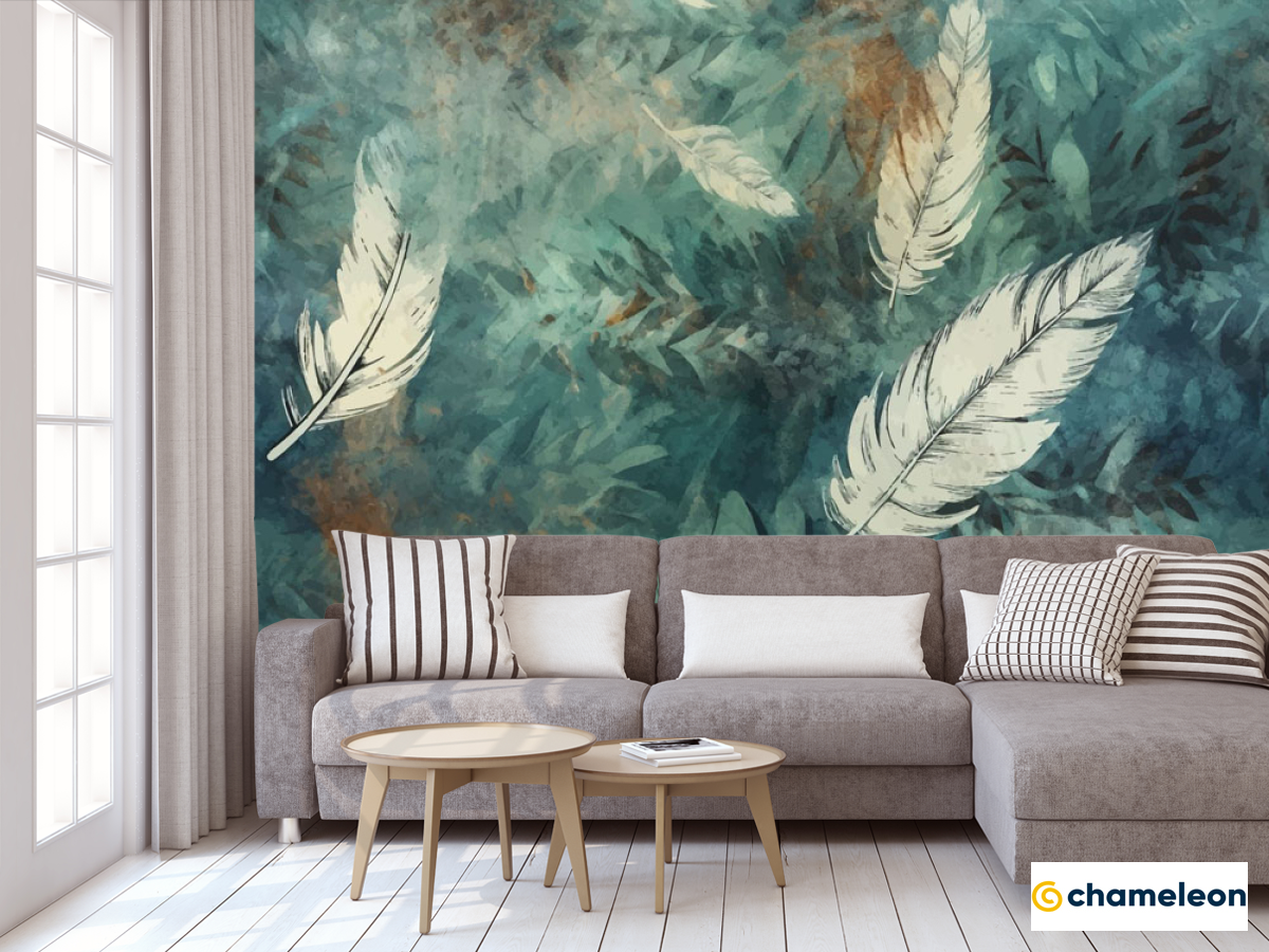 Фотообои «Фотообои Перья на зеленом фоне», (арт. 33240) - купить в интернет-магазине Хамелеон