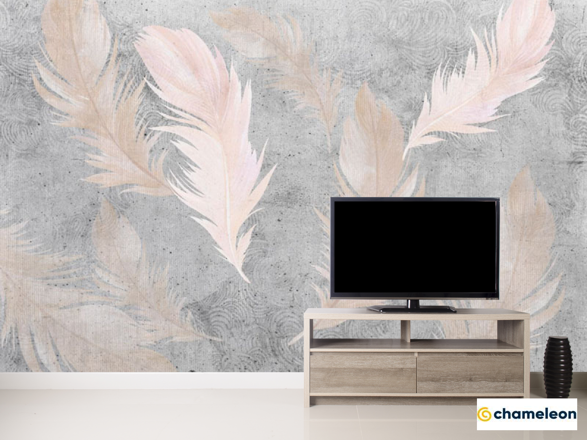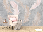 Фотообои «Фотообои Розовые перья на фоне бетона.», (арт. 33284) - купить в интернет-магазине Хамелеон