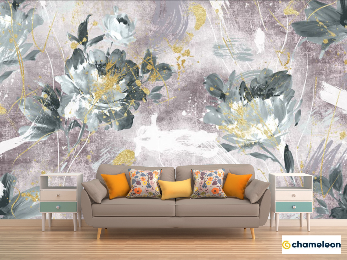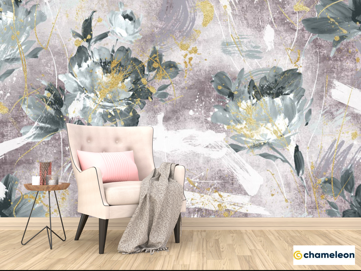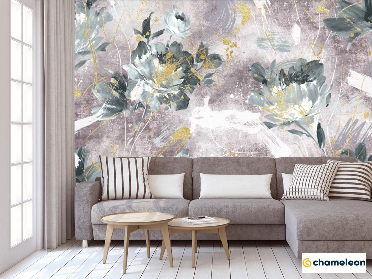 Фотообои «Фотообои Дизайнерские цветы с золотом розовые.», (арт. 33327_1) - купить в интернет-магазине Хамелеон