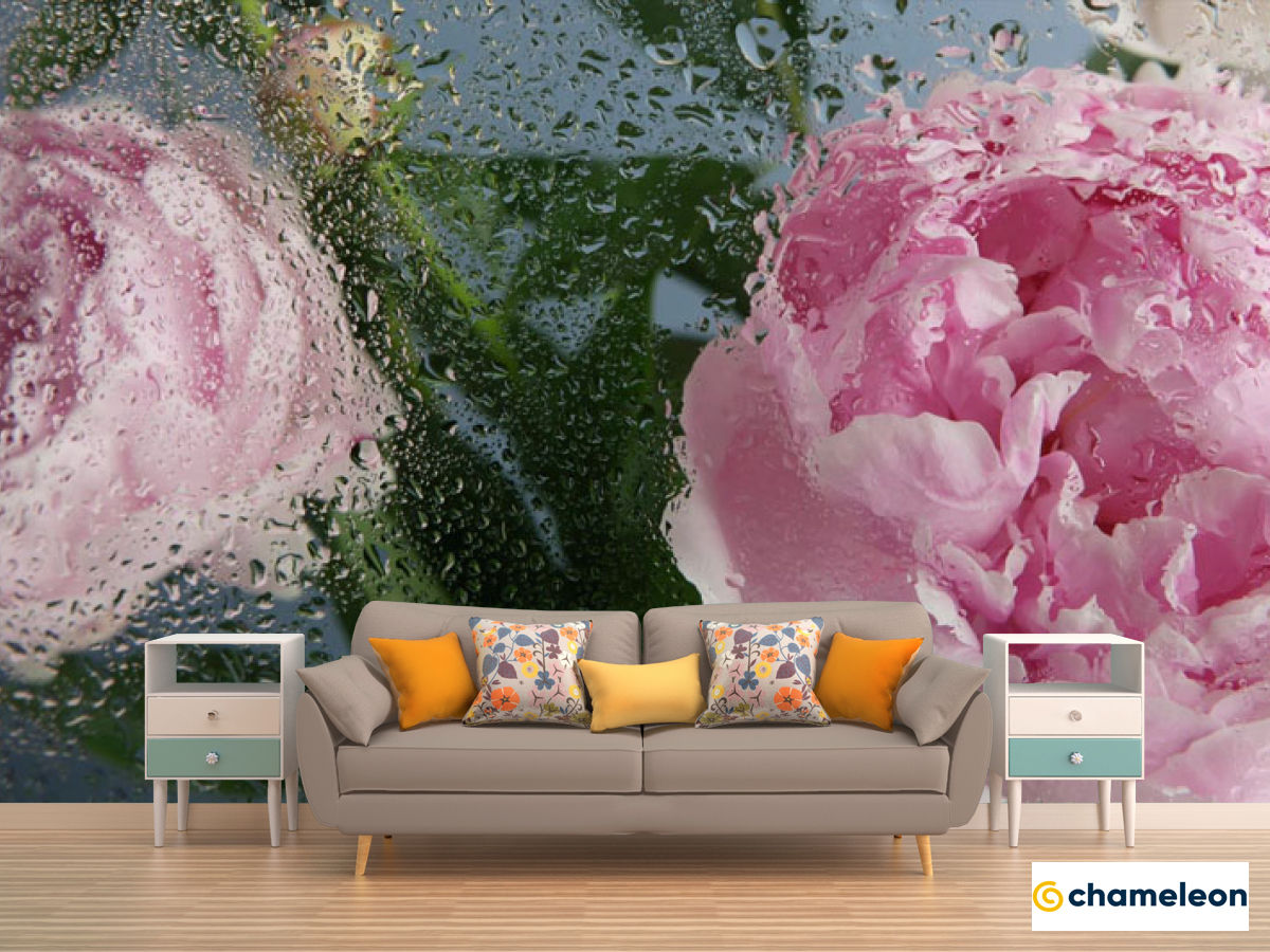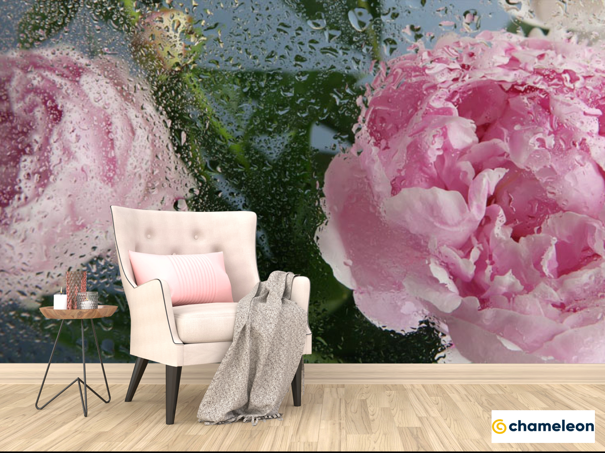 Фотообои «Фотообои Розовые пионы с каплями дождя», (арт. 33777) - купить в интернет-магазине Хамелеон