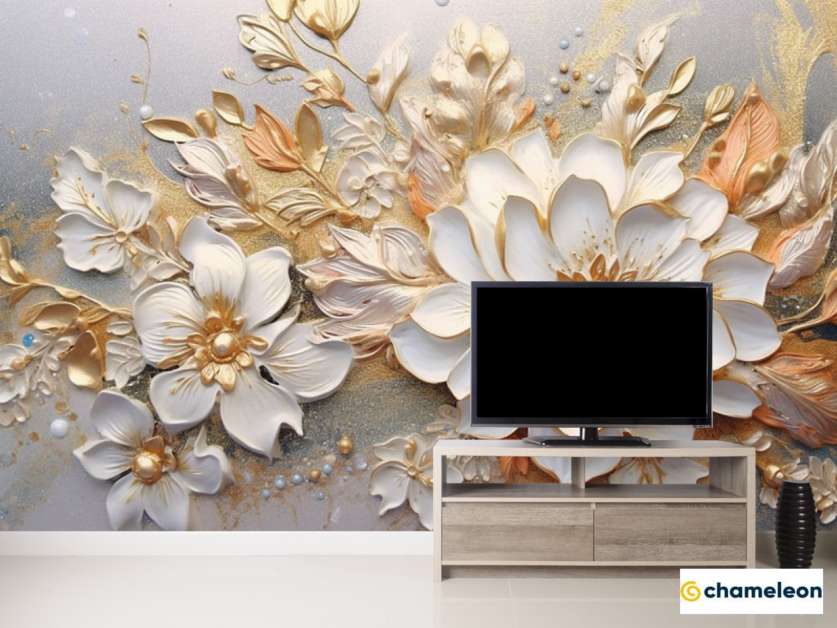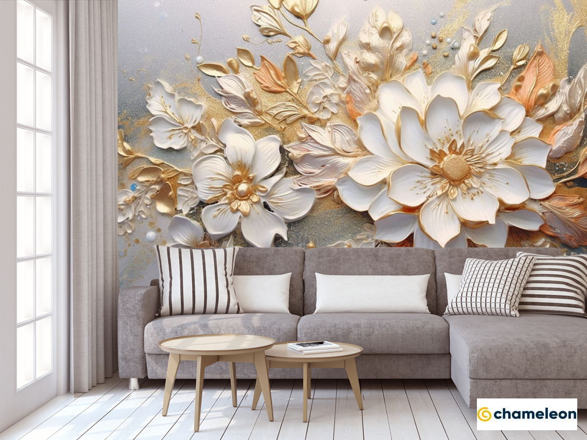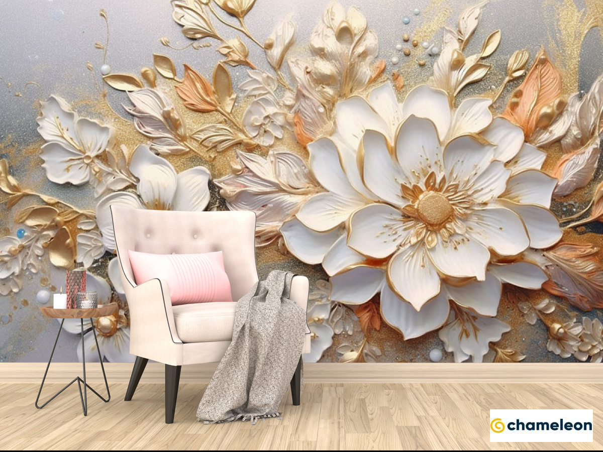 Фотообои «Фотообои 3д цветы золотые», (арт. 33797) - купить в интернет-магазине Хамелеон