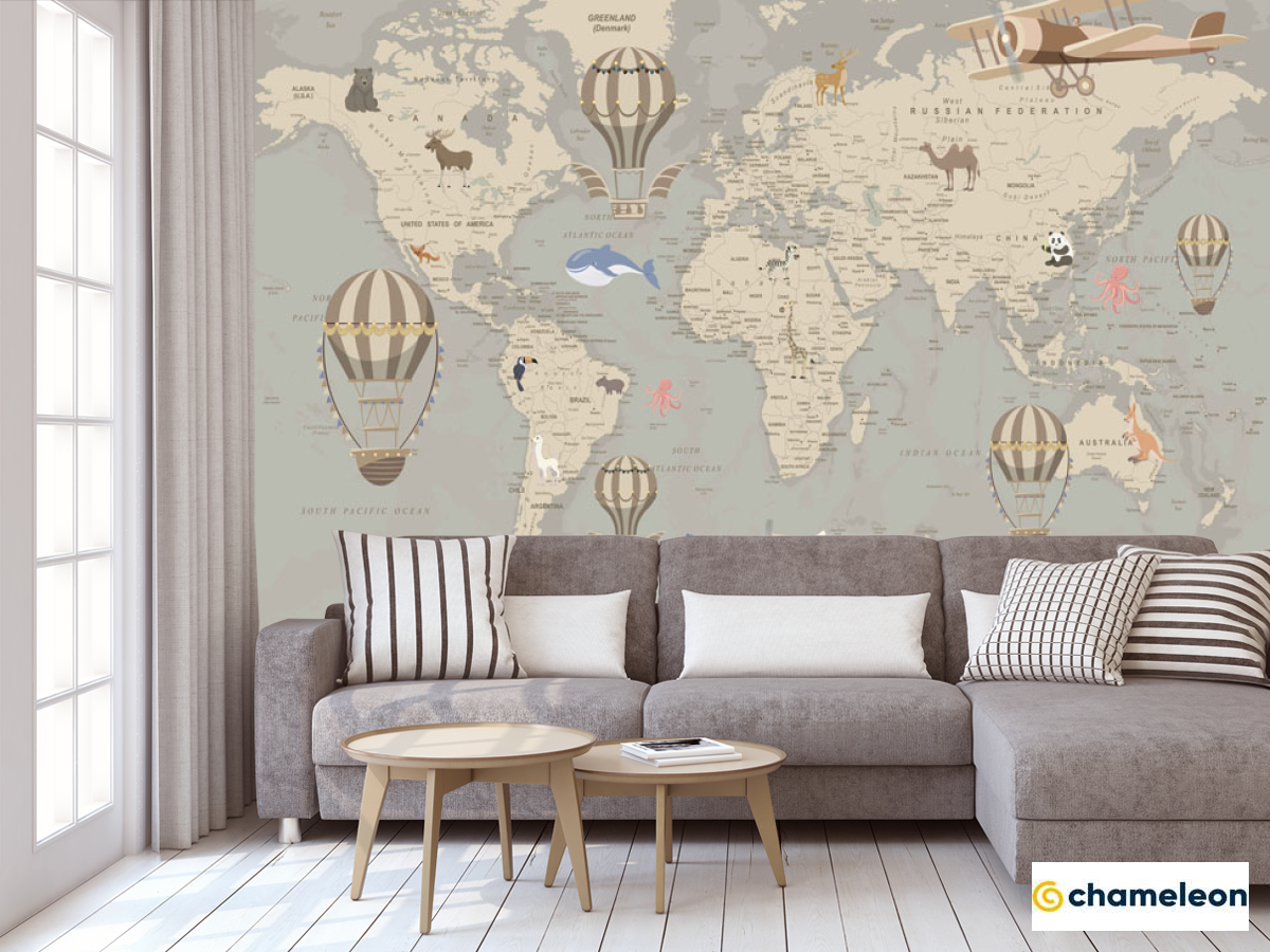 Фотообои «Фотообои Бежевая карта с воздушными шарами», (арт. 33910) - купить в интернет-магазине Хамелеон