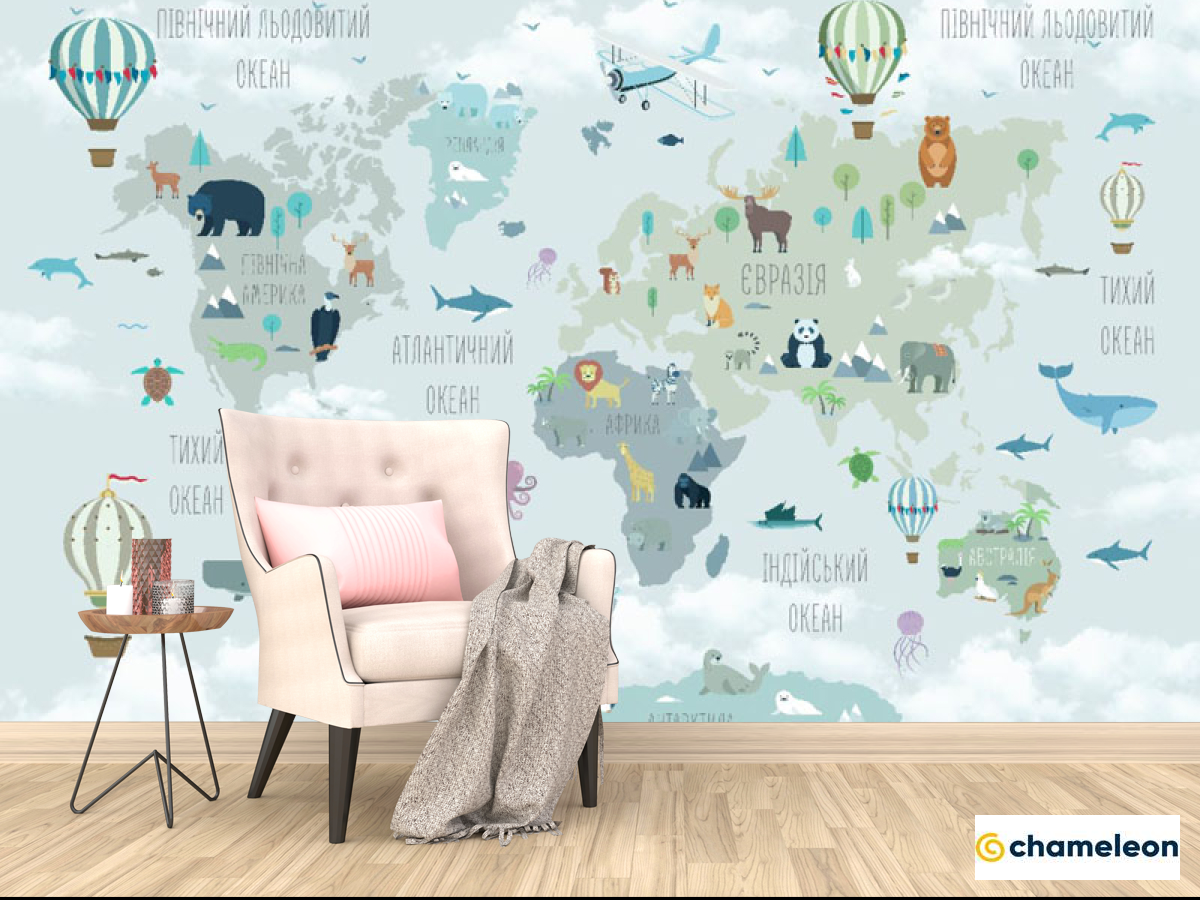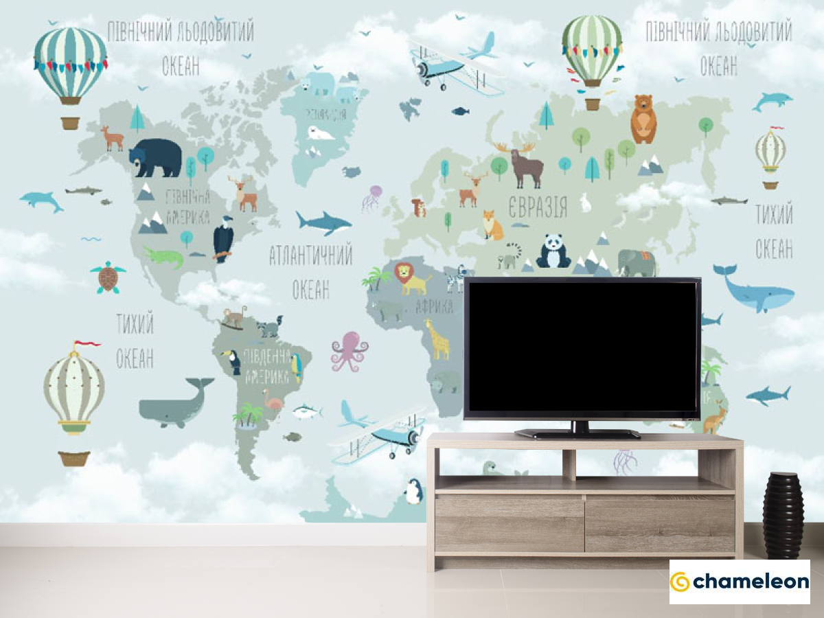 Фотообои «Фотообои Карта детская в зелено-синем оттенке», (арт. 33922) - купить в интернет-магазине Хамелеон