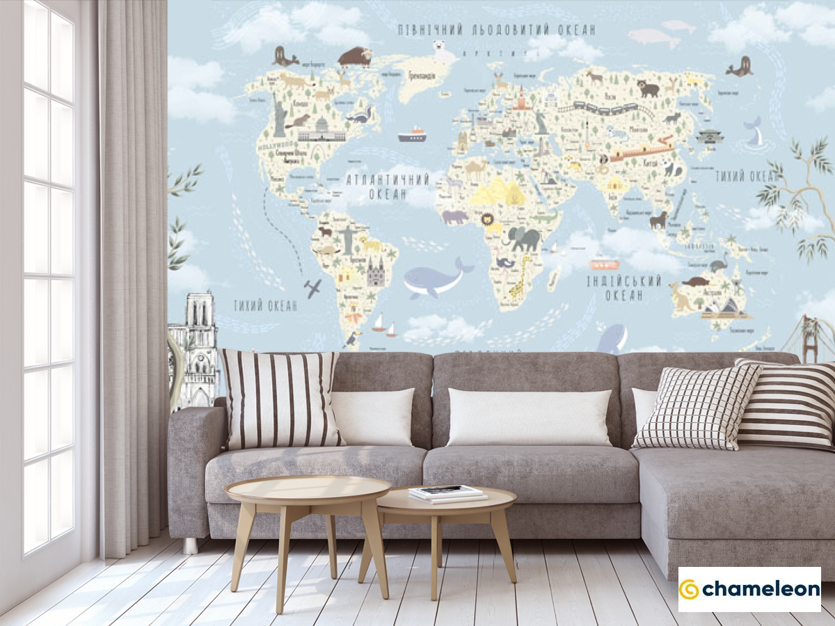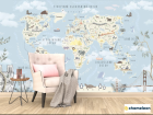 Фотообои «Фотообои Карта детская архитектура тропических листьев», (арт. 33923) - купить в интернет-магазине Хамелеон