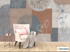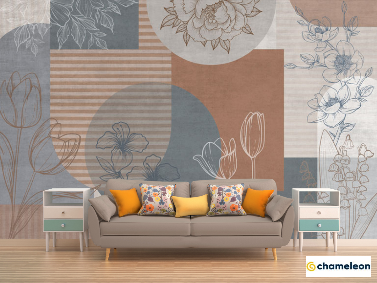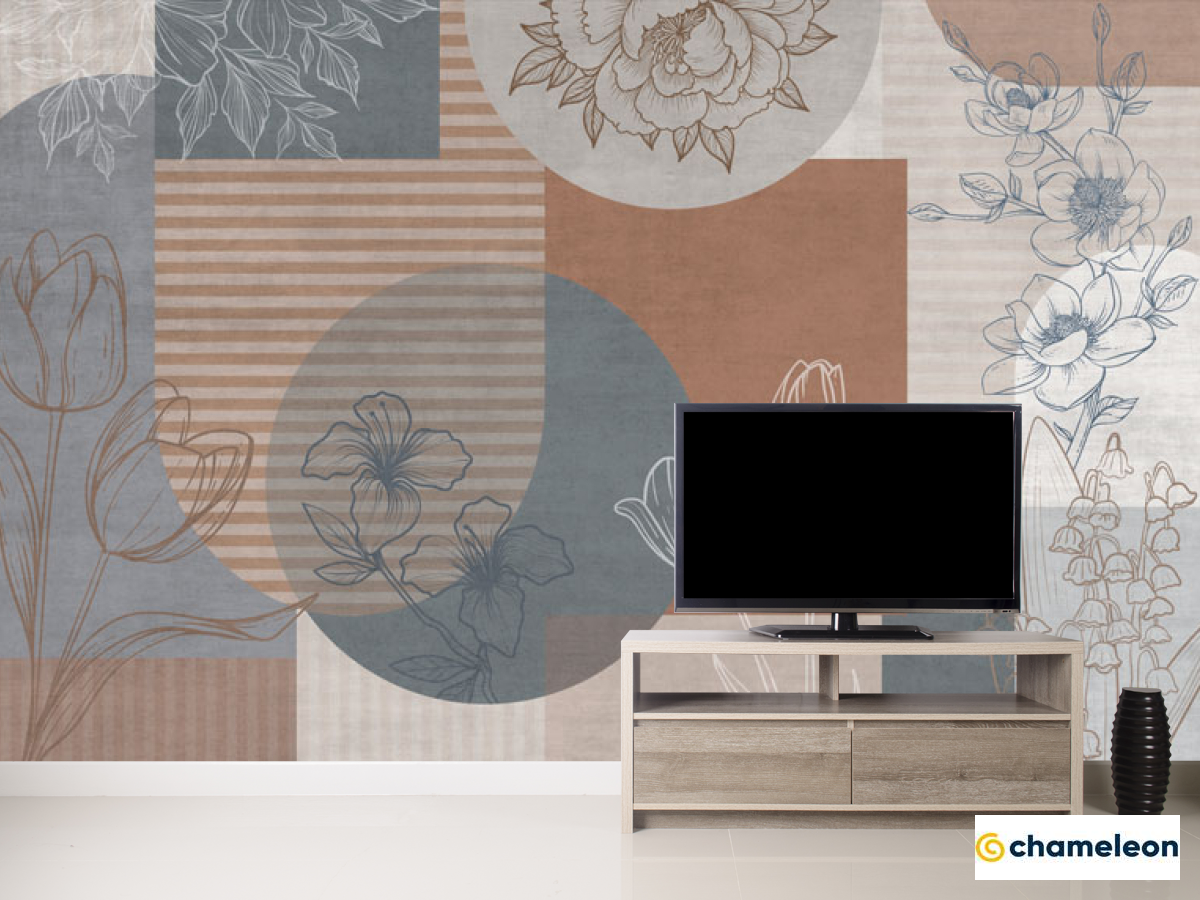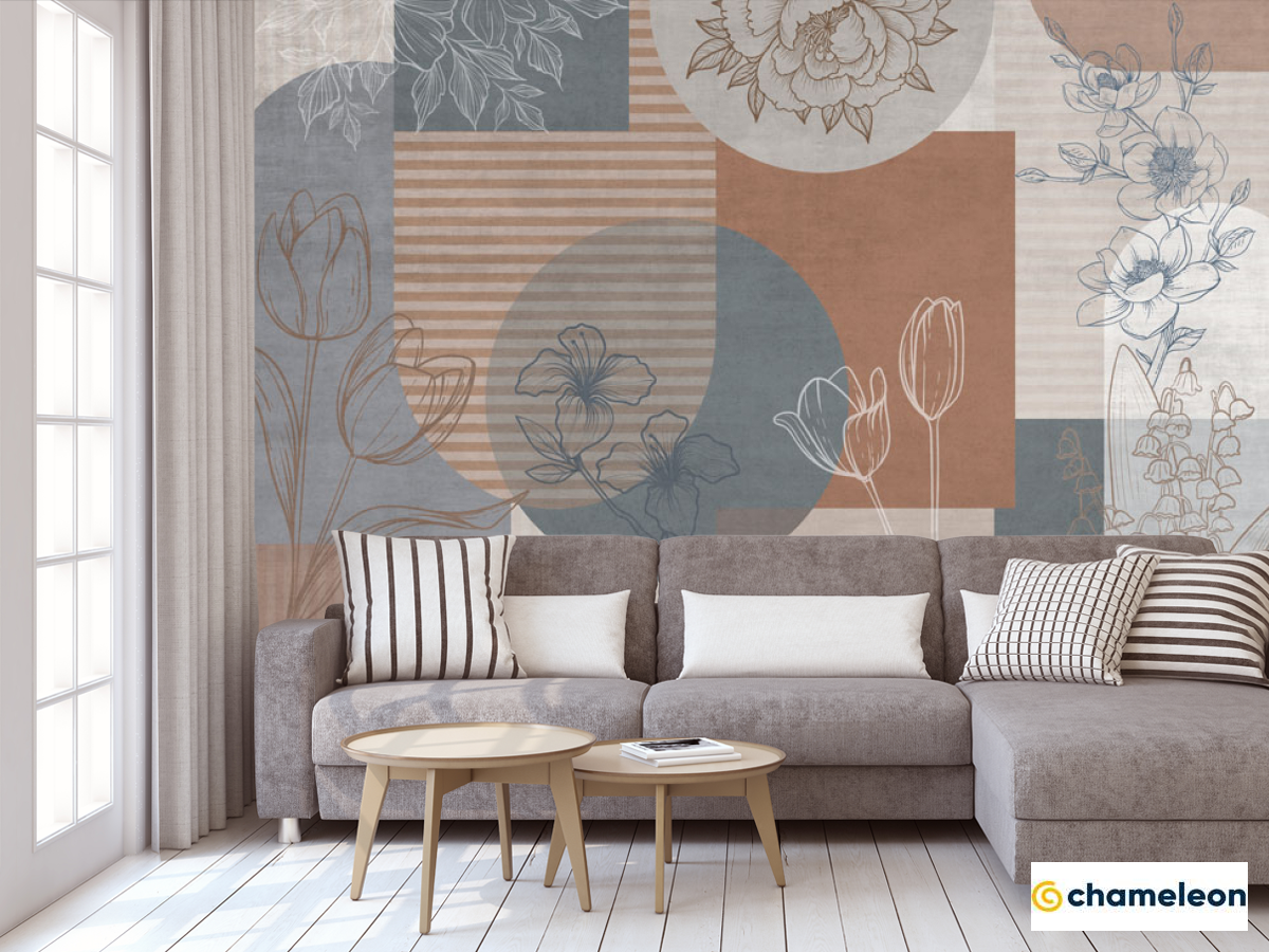 Фотообои «Фотообои Векторные цветы на фоне геомтерии.», (арт. 34330) - купить в интернет-магазине Хамелеон