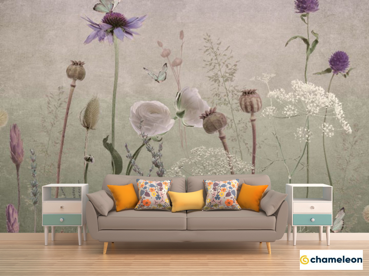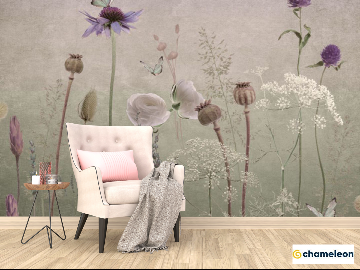 Фотообои «Фотообои Полевые дизайнерские цветы розовые», (арт. 34351_1) - купить в интернет-магазине Хамелеон