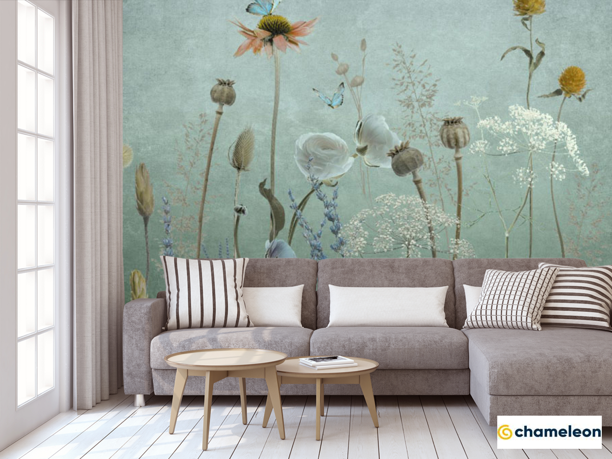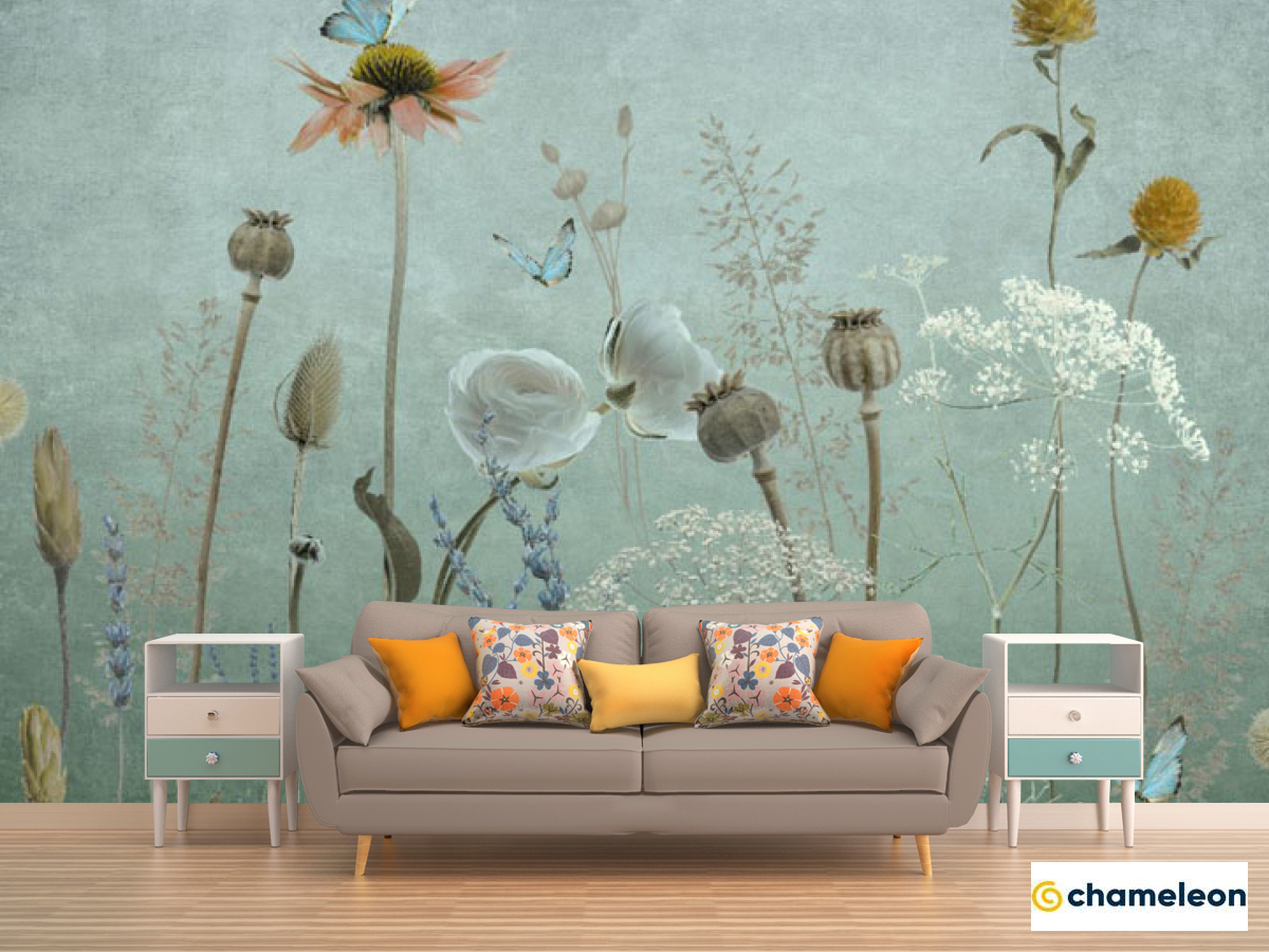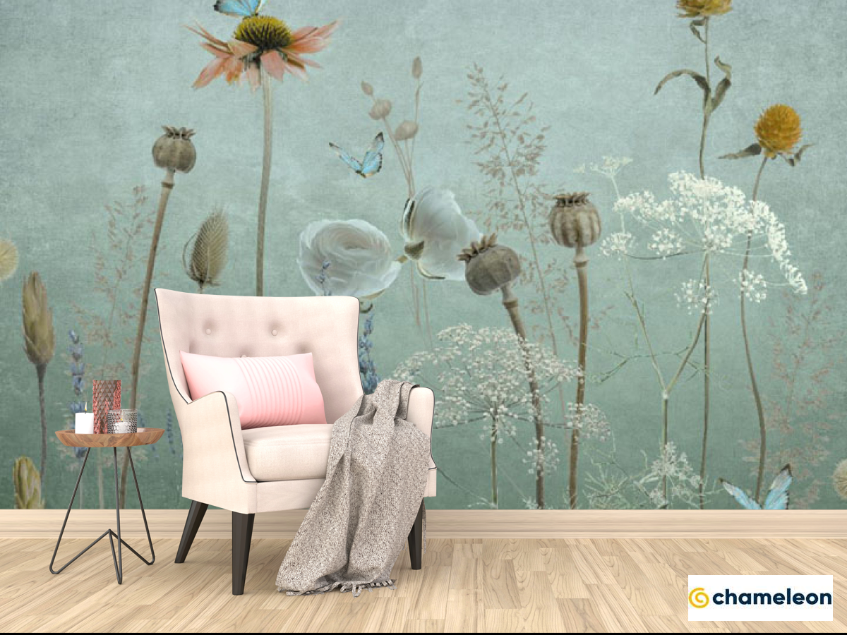 Фотообои «Фотообои Полевые дизайнерские цветы зеленые», (арт. 34351_2) - купить в интернет-магазине Хамелеон