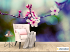 Фотообои «Фотообои Веточка с розовыми цветами», (арт. 5736) - купить в интернет-магазине Хамелеон